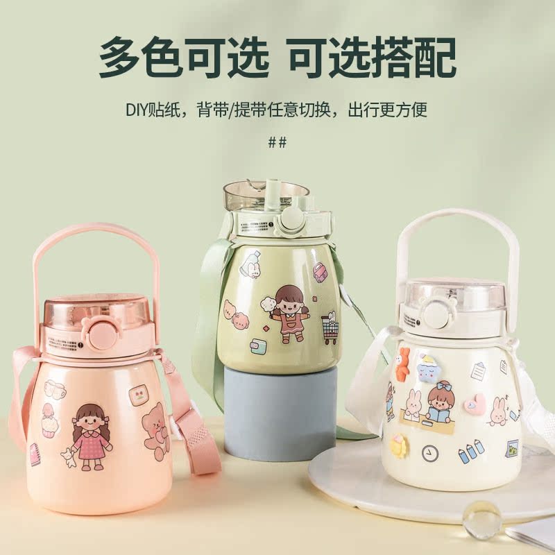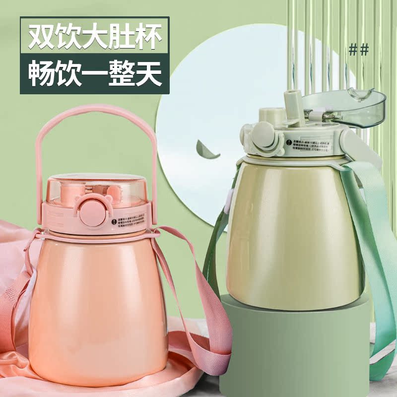 One-cover double-drink insulation cup creative inside and outside 304 stainless steel insulation cup large-capacity portable water cup with straw