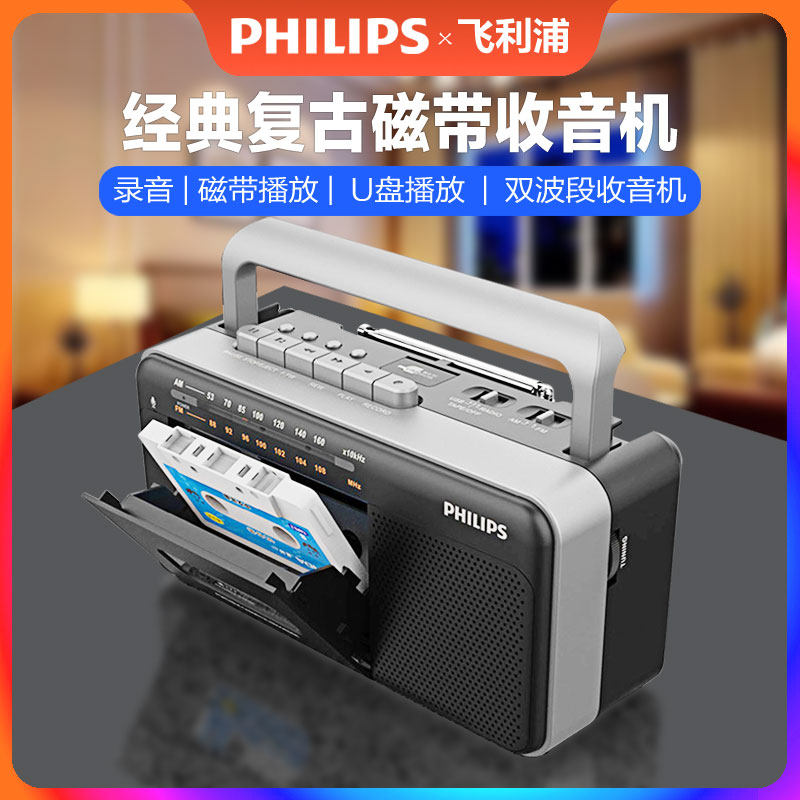 Philips cassette tape player recorder radio retro vintage card with students old geriatric special-Taobao