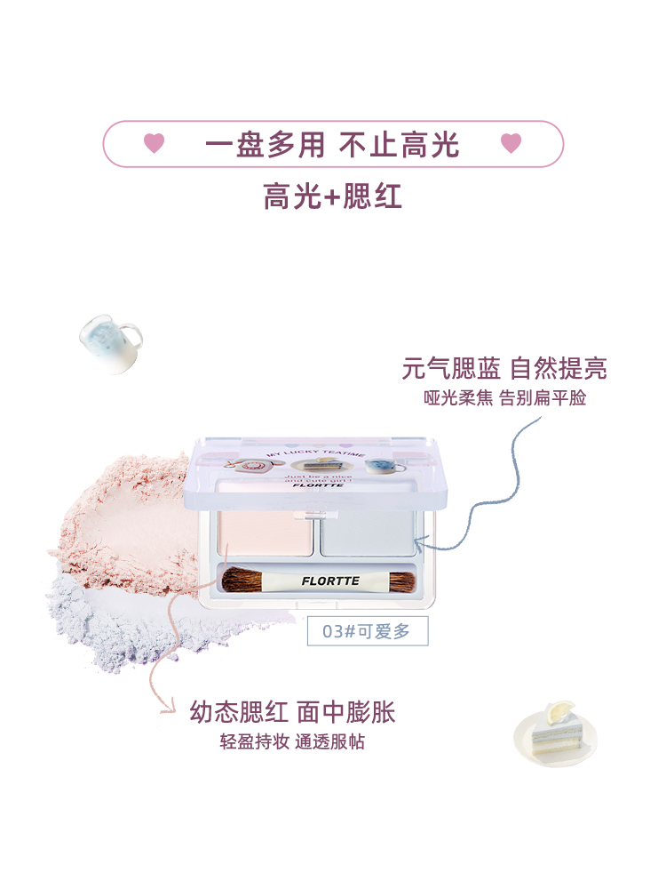 FLORTTE Flower Loria Lovely Song Two-color high-gloss lying silkworm powder matte brightens low-saturation swelling color blush
