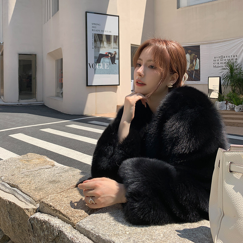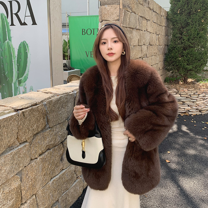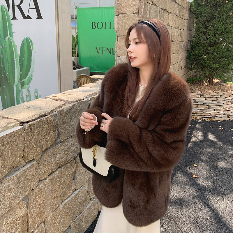 2022 autumn and winter new imported whole fox fur coat women's mid-length V-neck young coat hot style