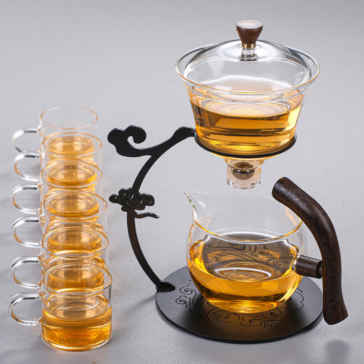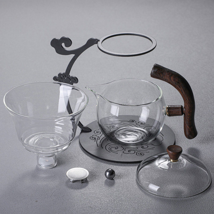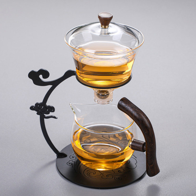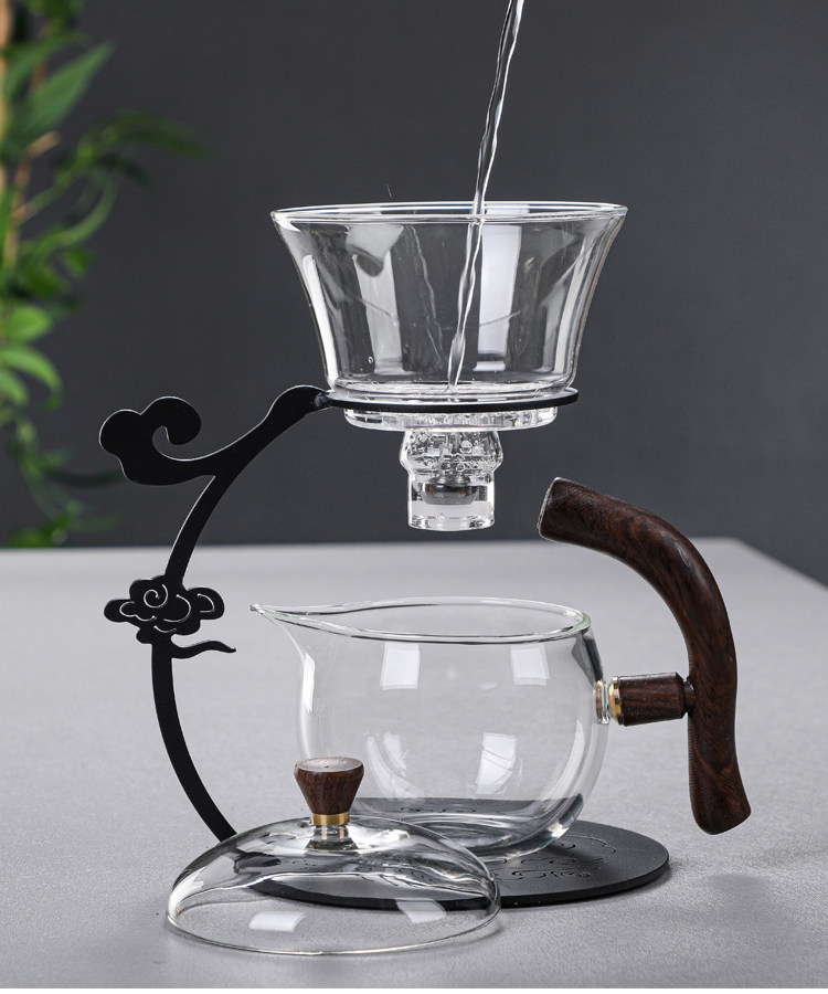 Lacquer iron frame semi-automatic magnetic suction heat-resistant tea set boron lazy household utensils high bubble tea roasted auspicious cloud glass silicon