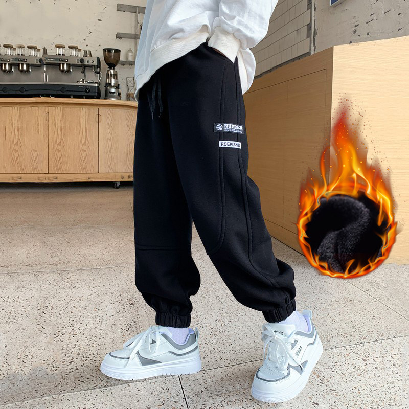 Boy pants spring autumn style 2023 new large children's fall sports plus suede pants autumn winter 12-year-old boy tide-Taobao