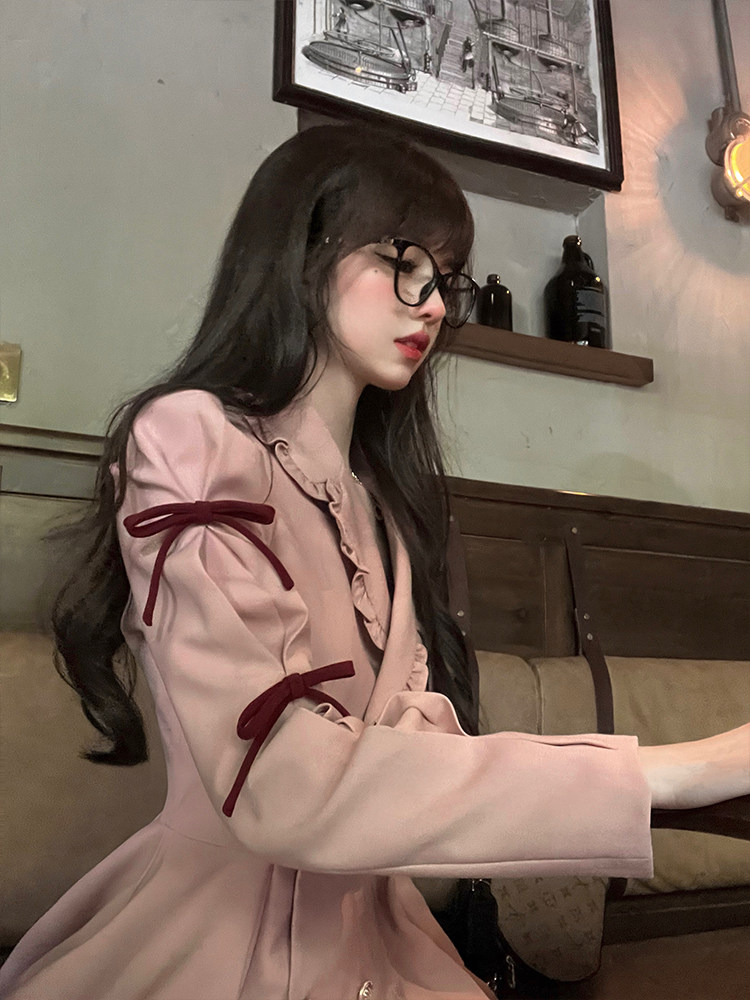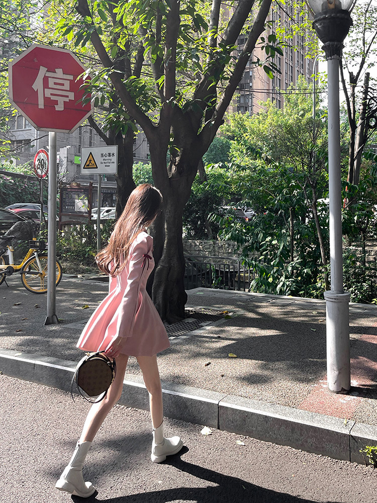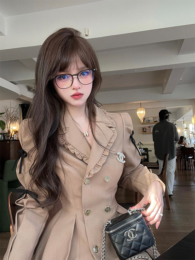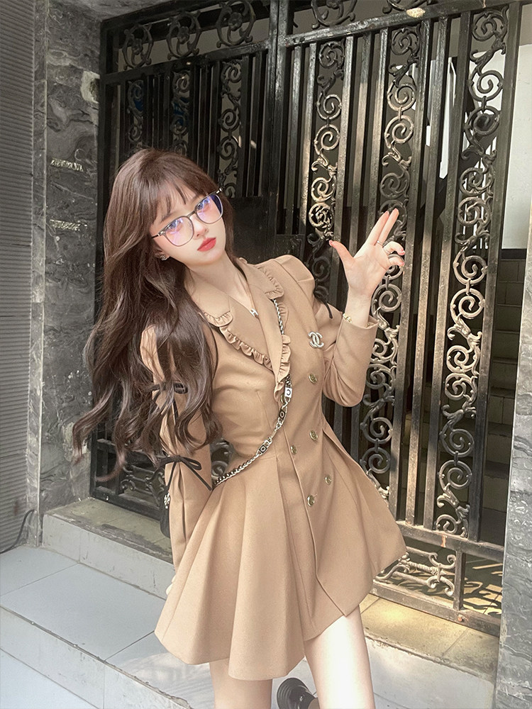 Lazy Didi Textbooks Beauty 100 Pleats Suit Skirt Dresses Advanced Sensation Cashew Slim Long Sleeves Dress Dress-Taobao