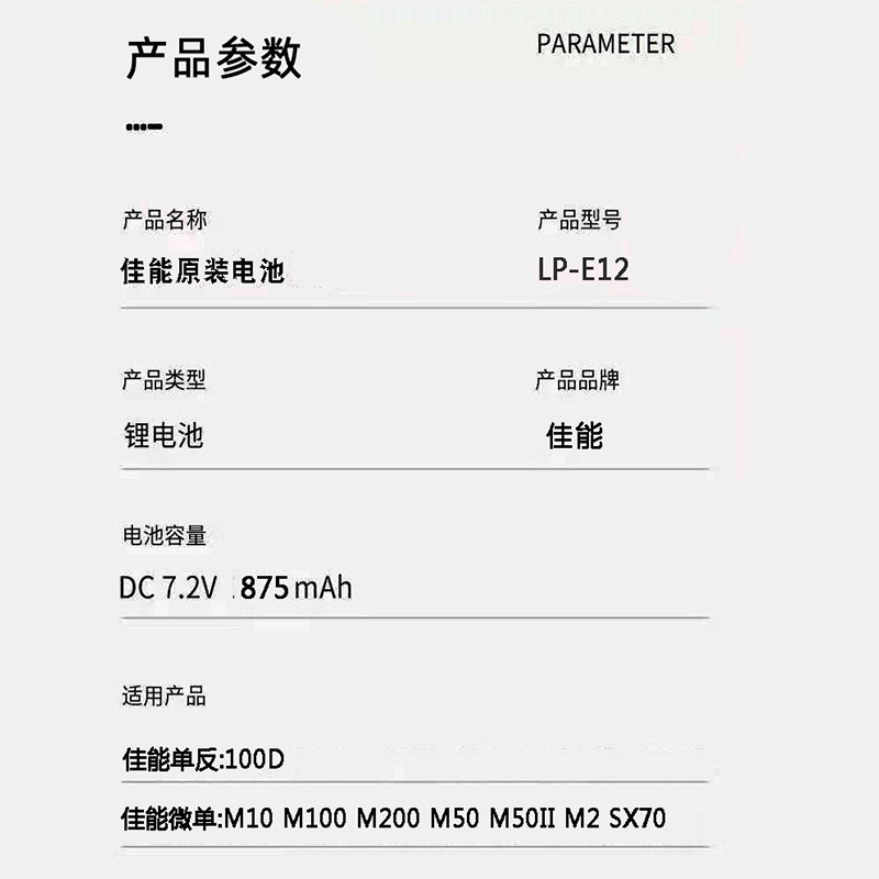Canon LP-E12 battery original fit Canon M50 M50 M50 M100 M100 M200 100D M Camera-Taobao