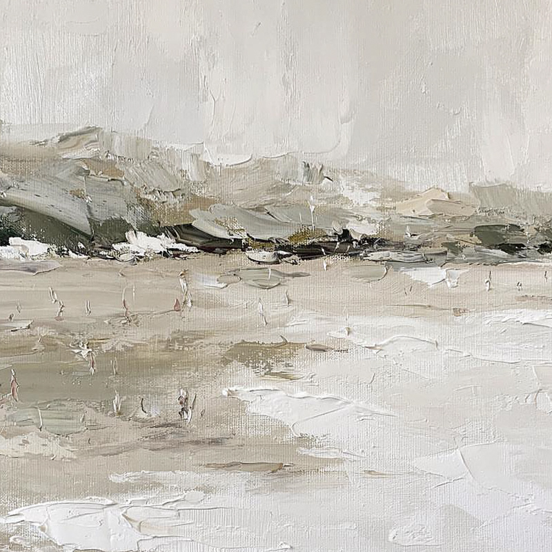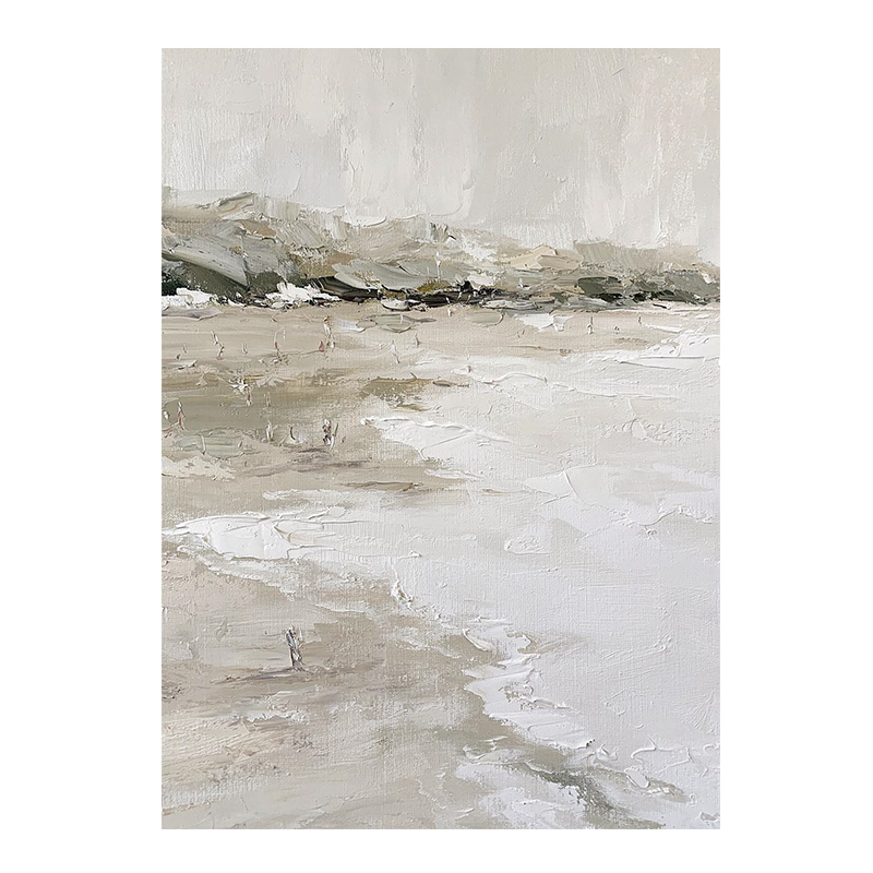 Hand-painted oil painting Silver Beach Mountain Sea Wabi Sabi wind minimalist living room dining room hanging painting abstract landscape landing large decorative painting - Taobao