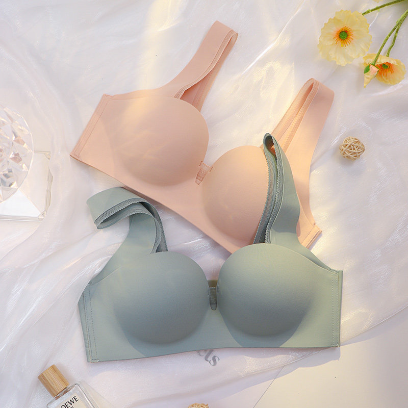 No-scratches underwear Female Upper and lower thick small breasts Poly-Free Steel Ring Anti Drooping Flat Breast Sports Half Cup Bra Hood