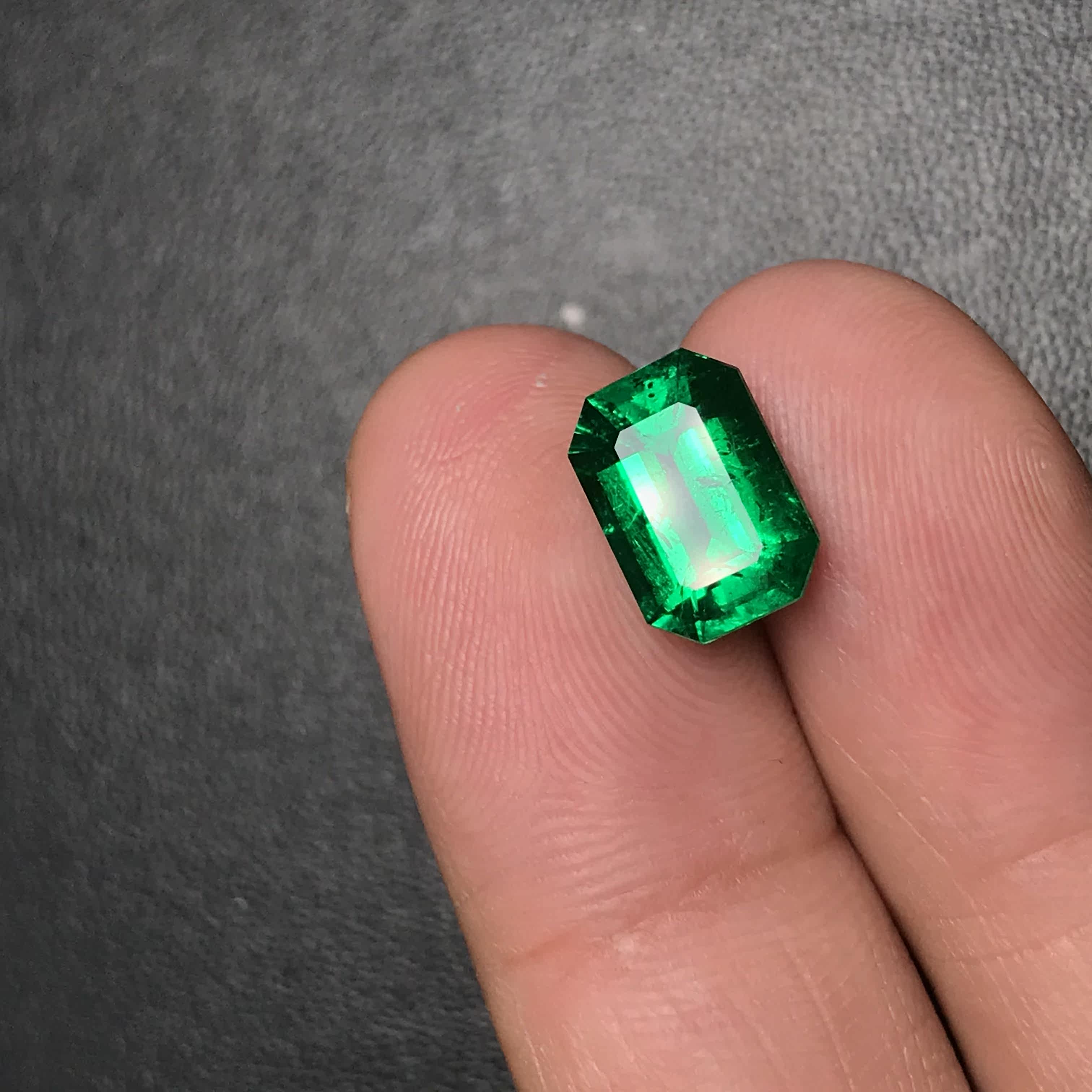 Caiyi jewelry 3 01ct natural Colombian micro-oil Musa emerald bare stone ring pendant color treasure