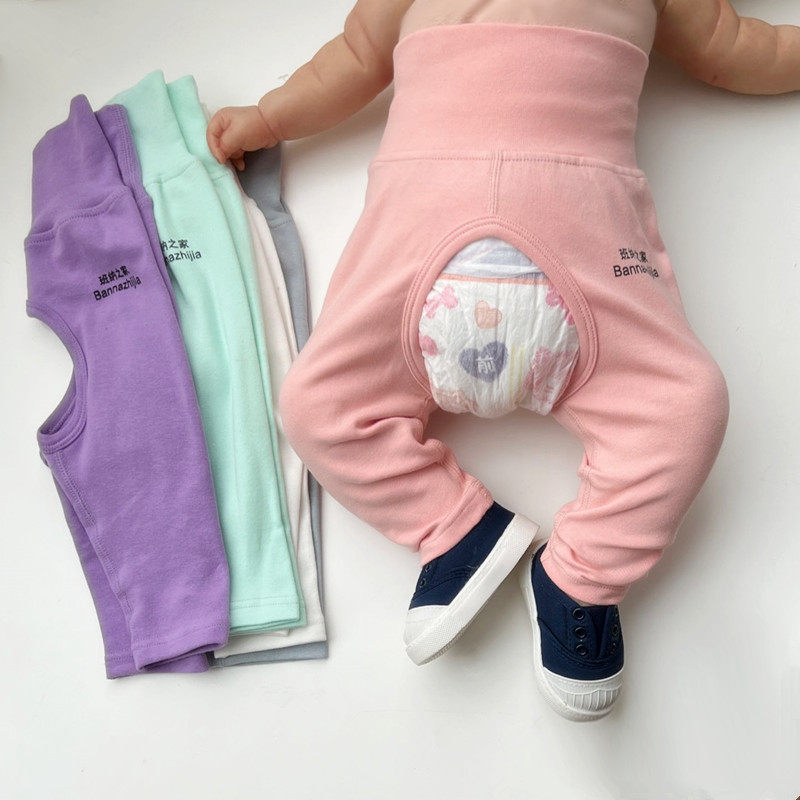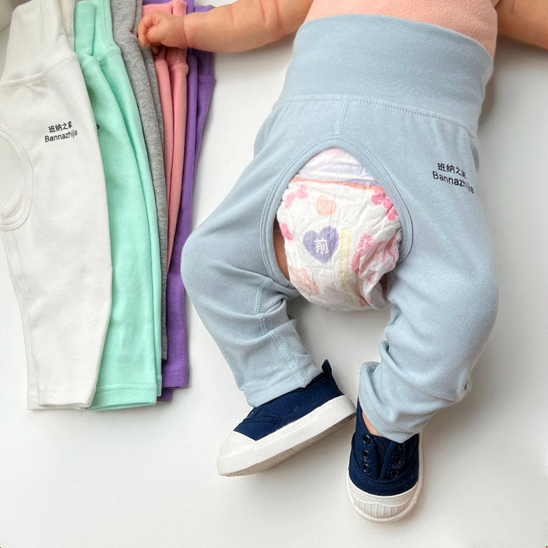 Baby spineless spring autumn newborn baby open crotch pants male and female baby pure cotton infant large PP high waist protective belly pants-Taobao
