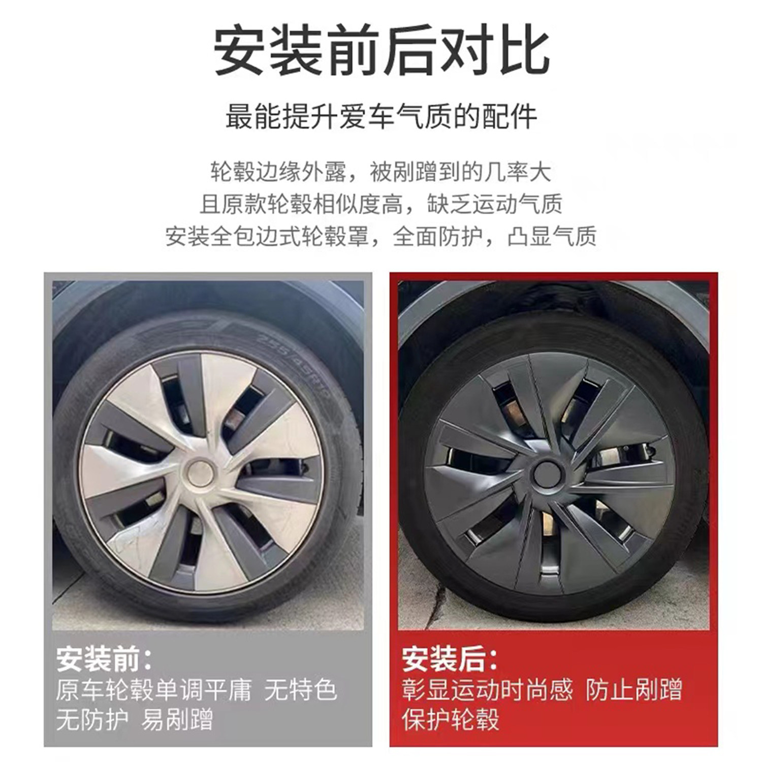 Wheel cover label (snap) 4 wheel cover labels (paste) 4 ModelY 19-inch original car model (dumb black) ModelY 19-inch Internet celebrity model (black and white spelling)Mo