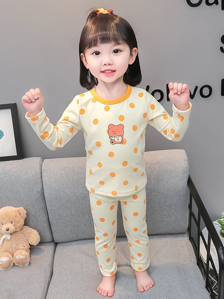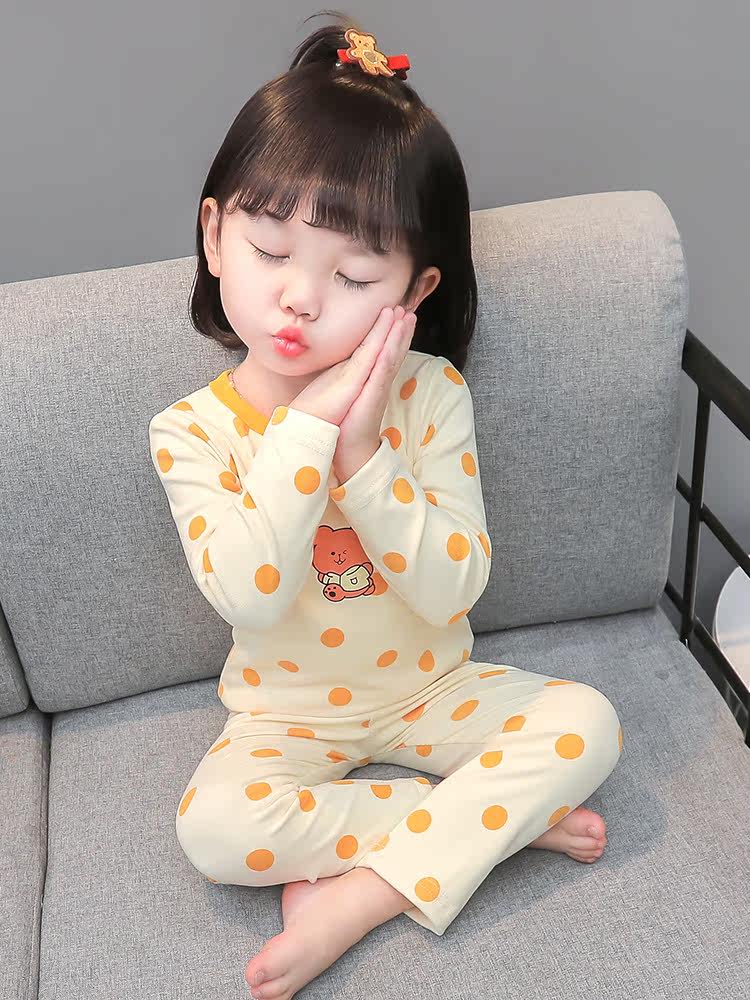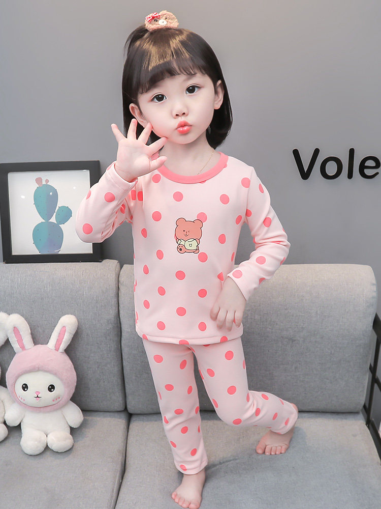 Girl pure cotton pajamas child lovely dot bear autumn children baby baby spring sleeve home clothing
