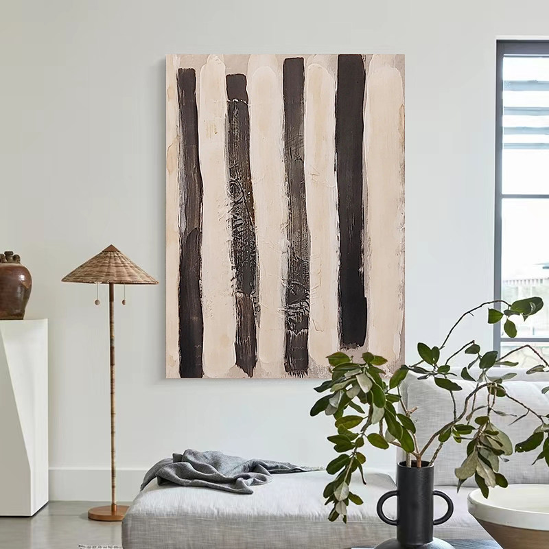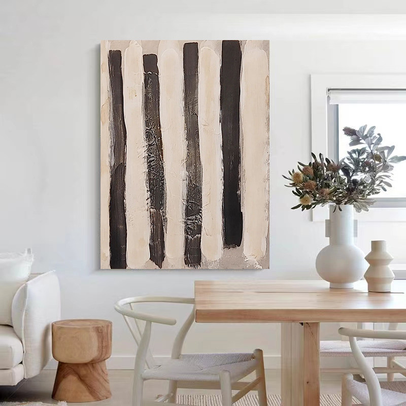 Hand-painted wabi-sabi vertical version abstract black and white oil painting homestay living room sofa floor decoration painting porch modern simplicity - Taobao