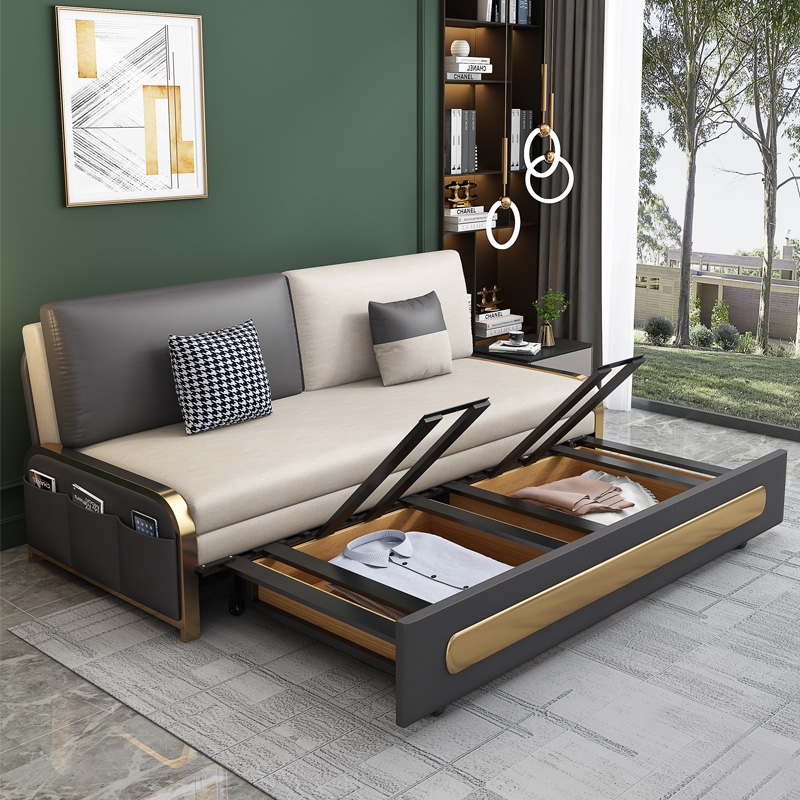 Foldable Sofa Bed Living-room Multifunction Dual-use Light Lavish Single Double Casual Tech Cloth Removable Wash Mesh Red Sofa-Taobao