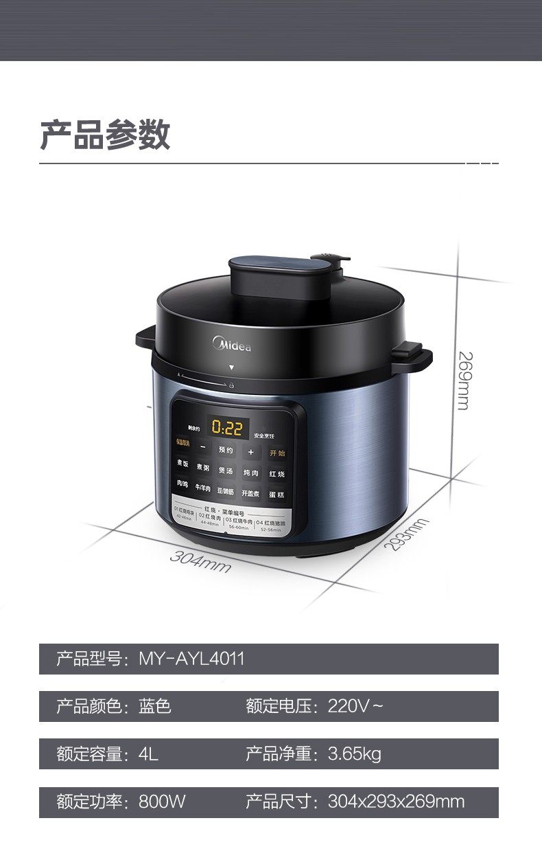 Midea Midea MY-AYL4011 household 4 liter intelligent electronic pressure cooker multi-function appointment single gallbladder