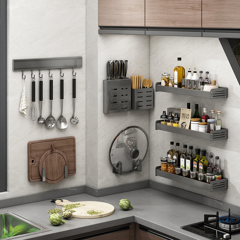 Gun Ash Kitchen Shelve Shelf-Free Seasonings Rack Wall-mounted Tool Holder Home Supplies Large Fully Multifunctional Containing Shelf-Taobao