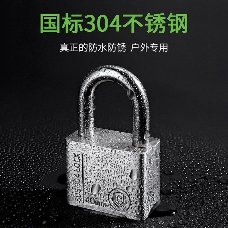 304 stainless steel padlock outdoor locking head waterproof anti-rust through open independent lock warehouse anti-prying big door lock anti-cut lock-Taobao