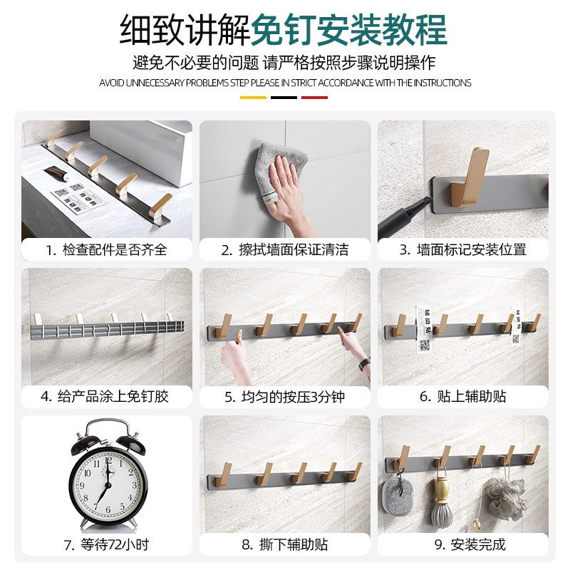 Clothes hook wall hanging porch bathroom clothes hook towel bathroom wall hook strong viscose free punching fixed
