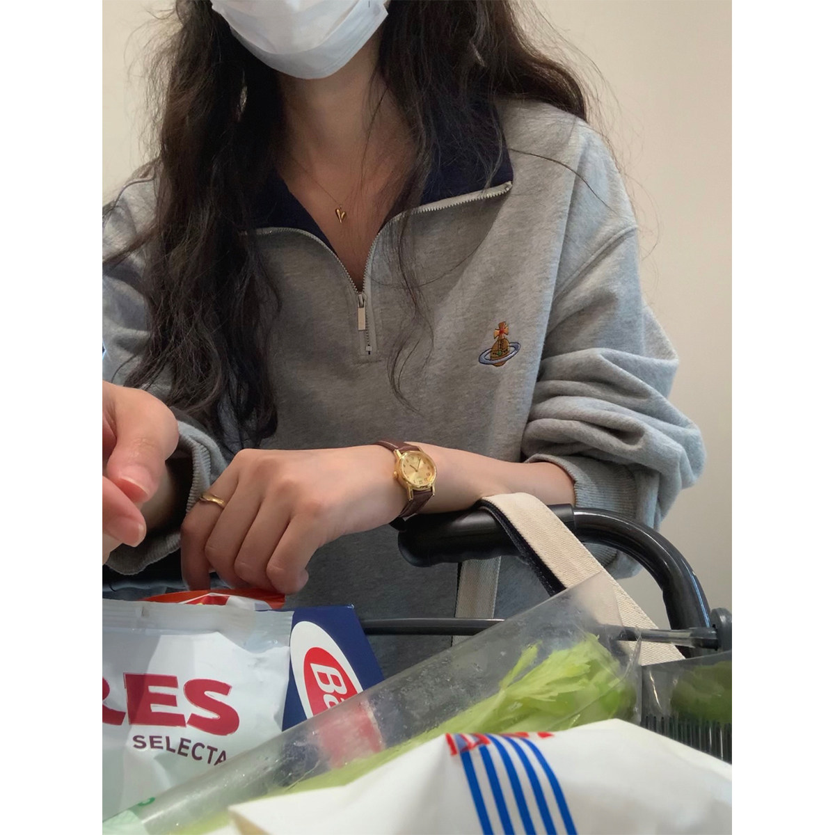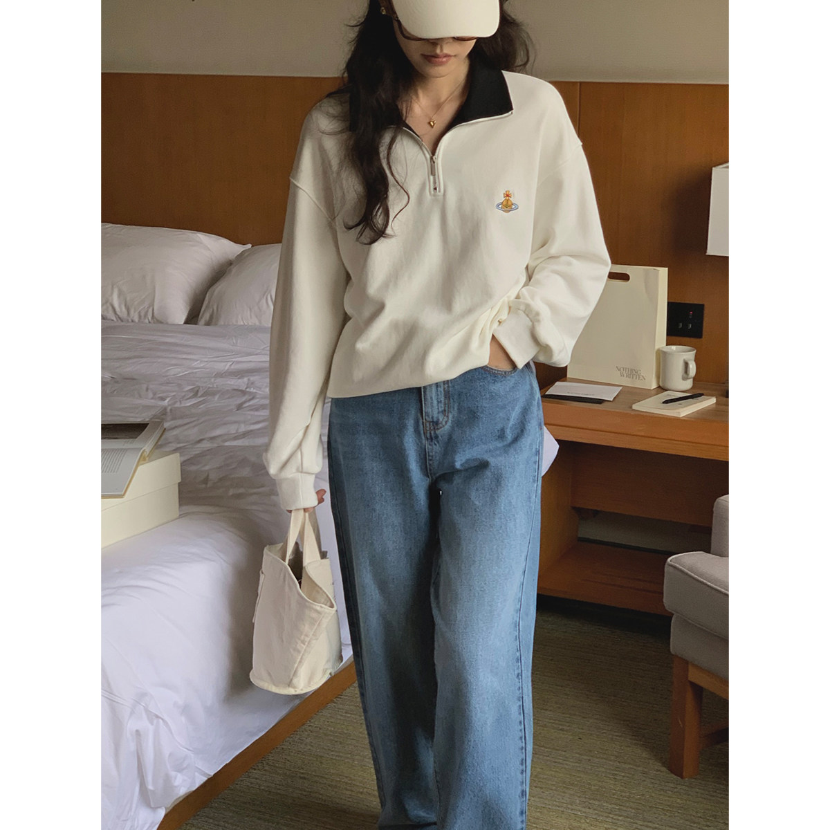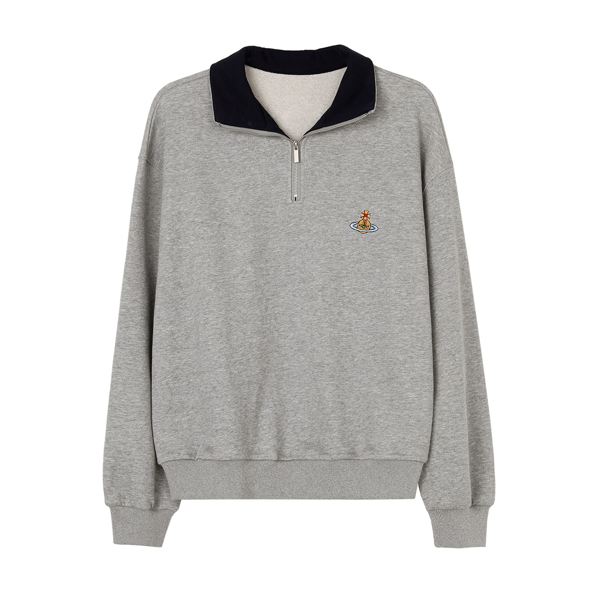 5siss American retro half zipper sweater women's spring and autumn new loose lazy contrast color long-sleeved polo collar top