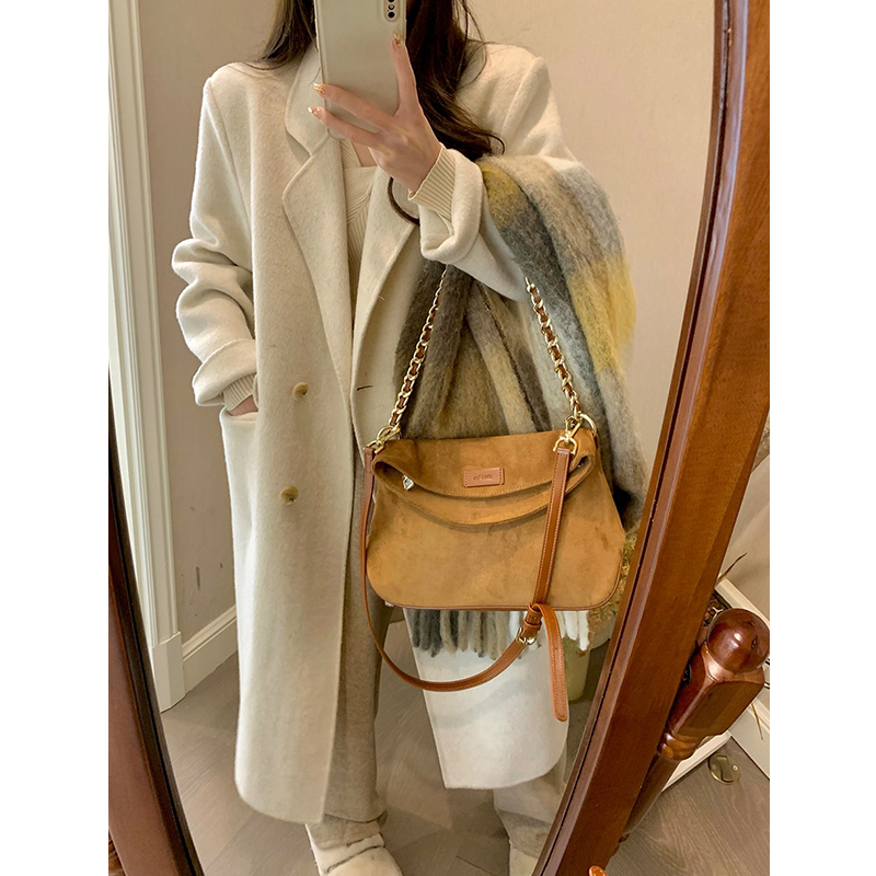 MUKOK white bifacial cashmere big coat woman 2023 autumn winter new suit collar loose in the middle of a long subcoat-Taobao