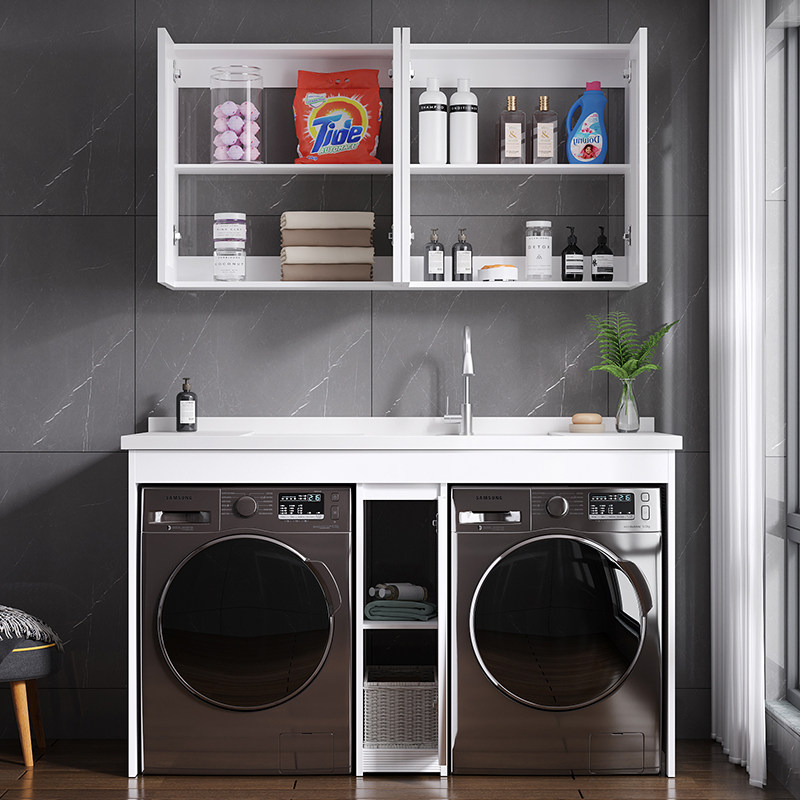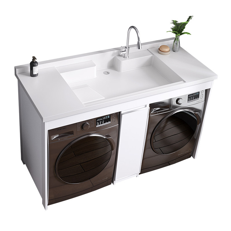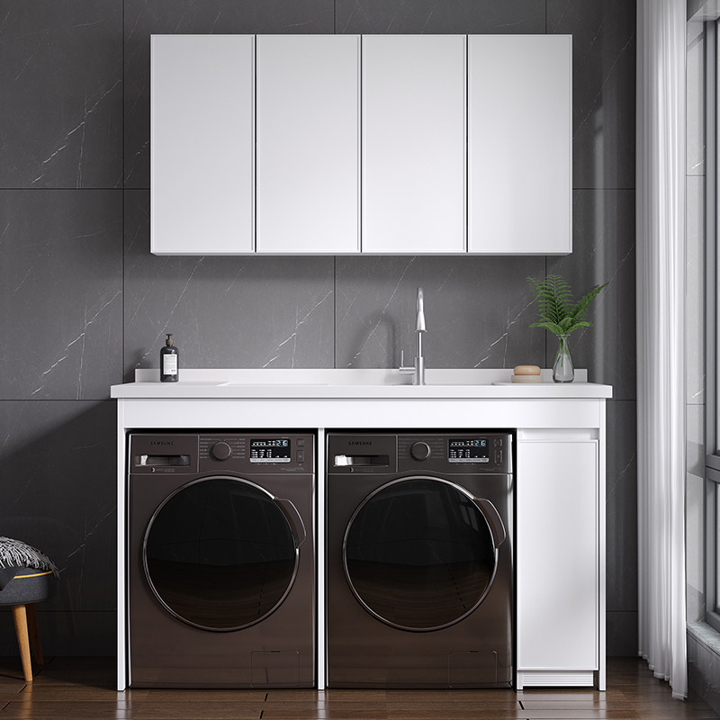 Balcony double washing machine integrated cabinet with washboard combination space aluminum washing machine cabinet laundry pool with dryer customization