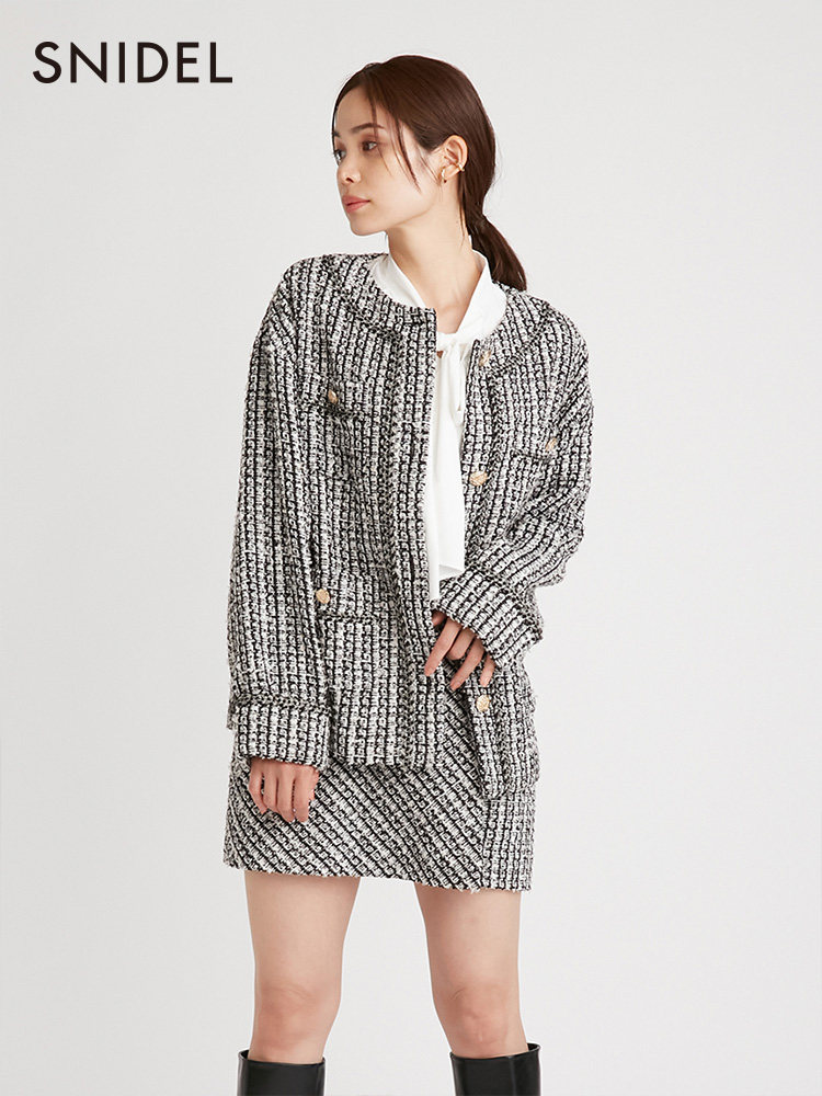 SNIDEL2022 autumn and winter new products elegant and fragrant tweed single-breasted jacket SWFJ224060
