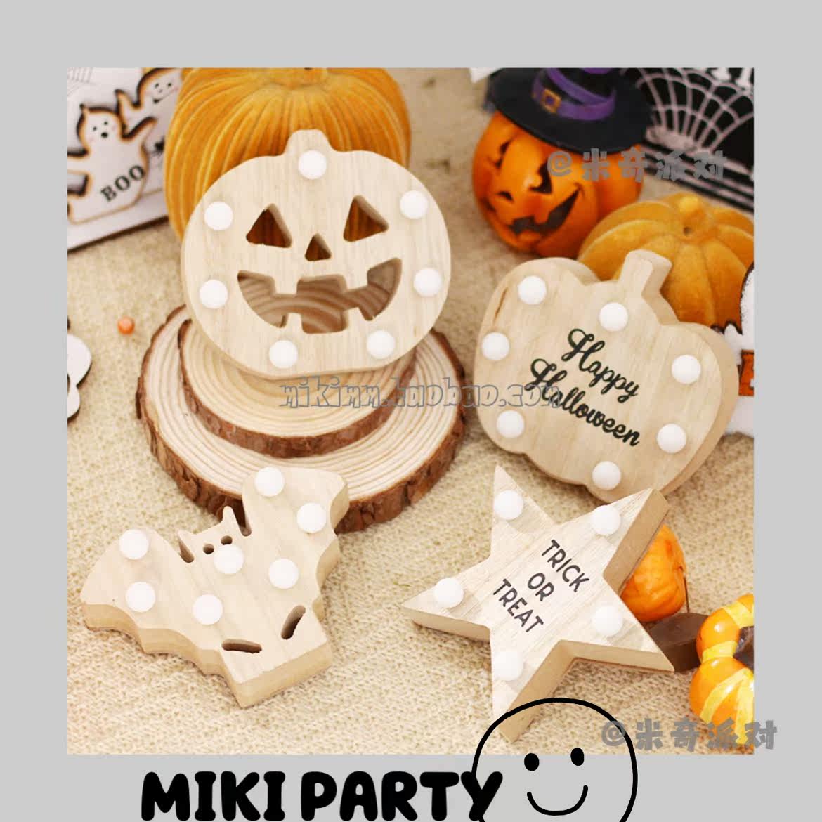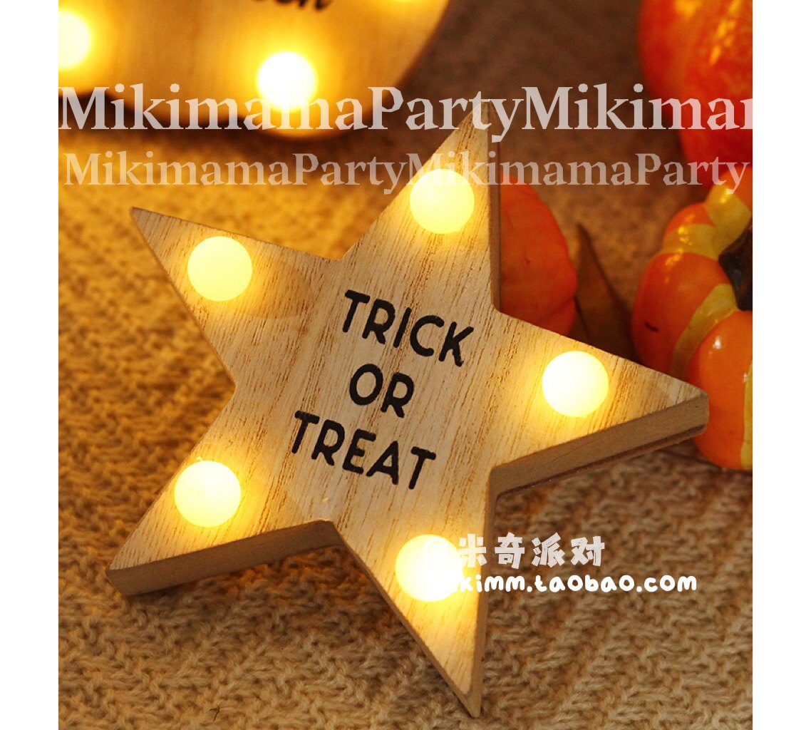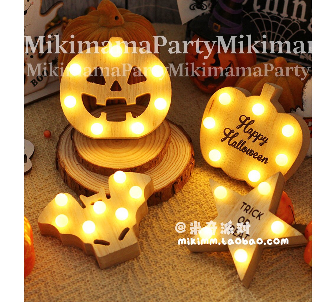 Halloween decorations pumpkin bat lights log wood ornaments stars desktop holiday decoration apple