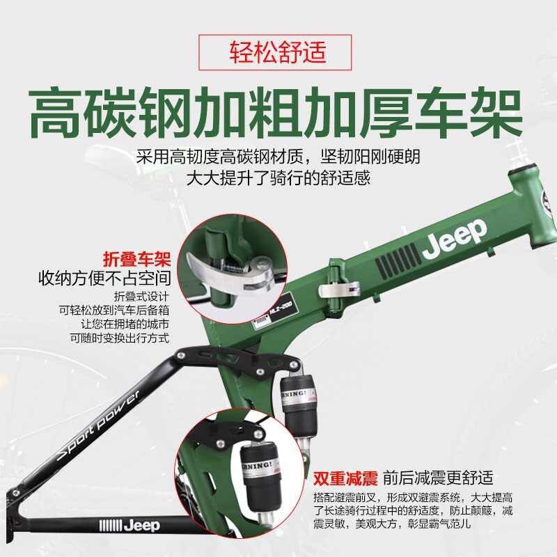 Jeep Mountain Folding Bicycle Adult Male Student Ultra Light Portable Double Shock Absorption Variable Speed