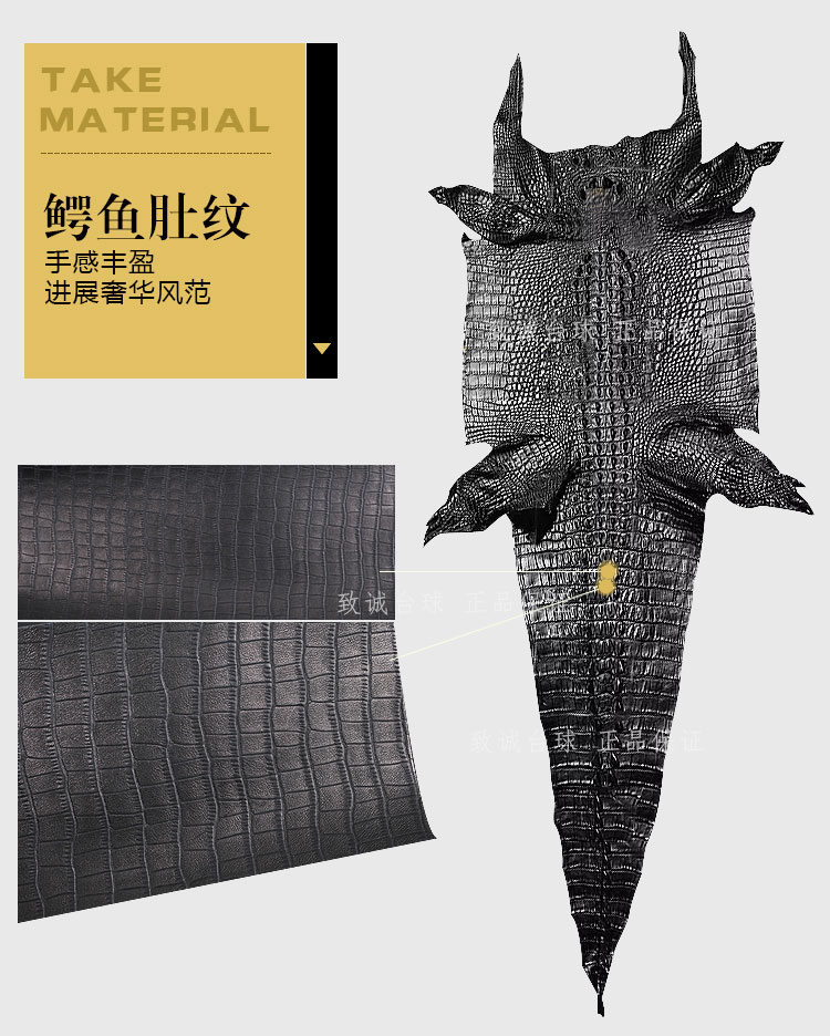 One high-quality black and white lizard pattern, one large grain pattern, one crocodile pattern, one lizard pattern, one pure black sea BAO WEN, one pure black shark pattern, one pure black Tang grass pattern, one pure black ostrich