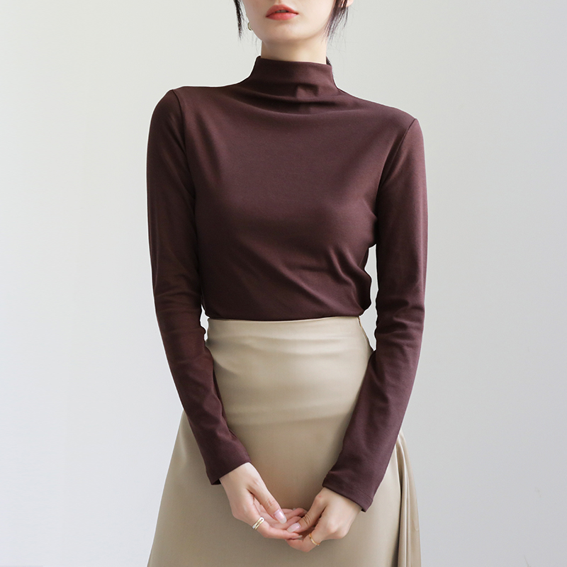 Semi-high collar black beating undershirt female inner lap pure cotton autumn and winter style with velvety thickened long sleeve T-shirt white sashimi blouse-Taobao