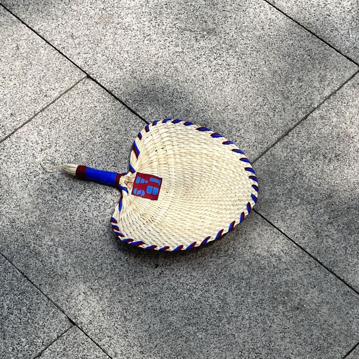 TR ) Original brown leaves hand knit logo embroidery enclosed summer cool fu fan mushroom lantern suit