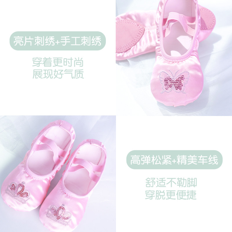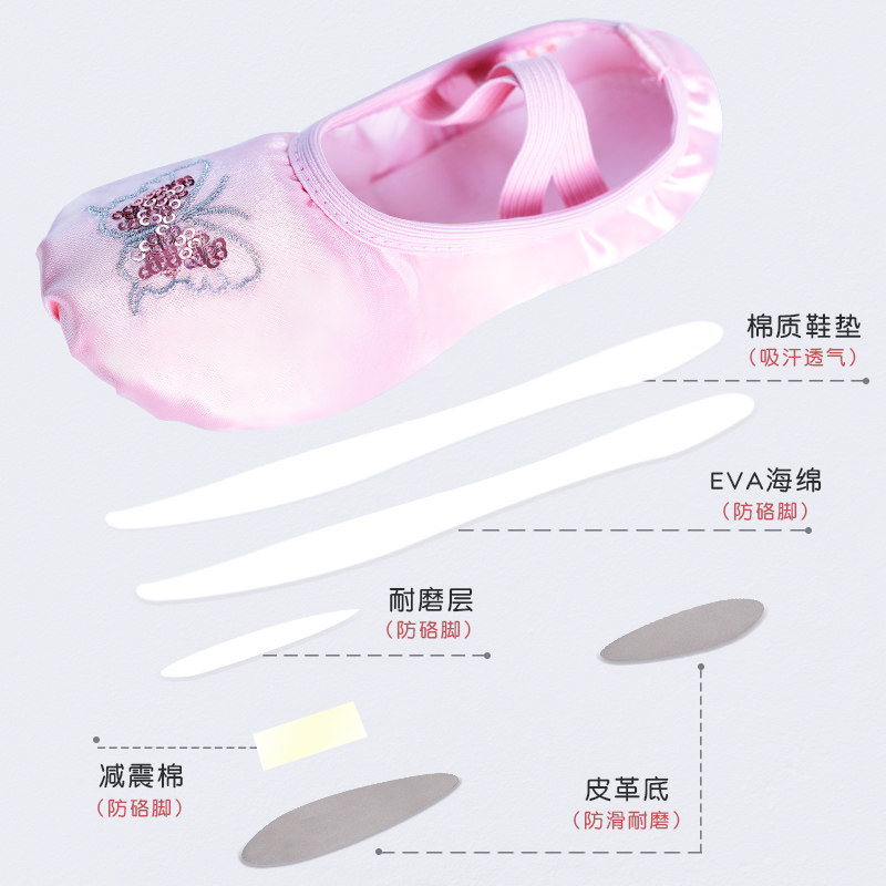 Dance shoes children satin princess soft shoes girl pink ballet shoes a piece of practice dancing shoes girl