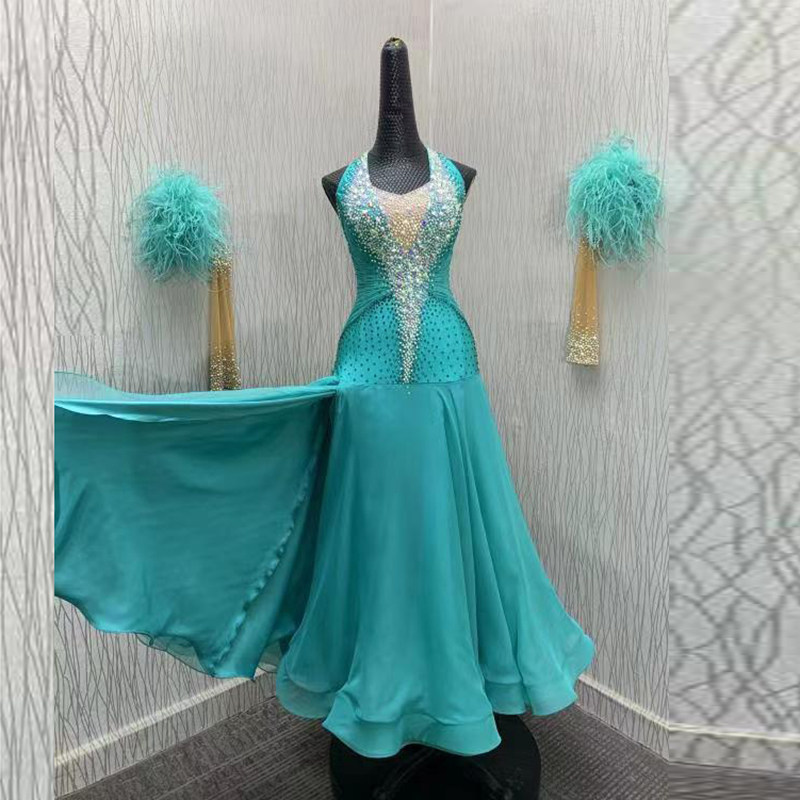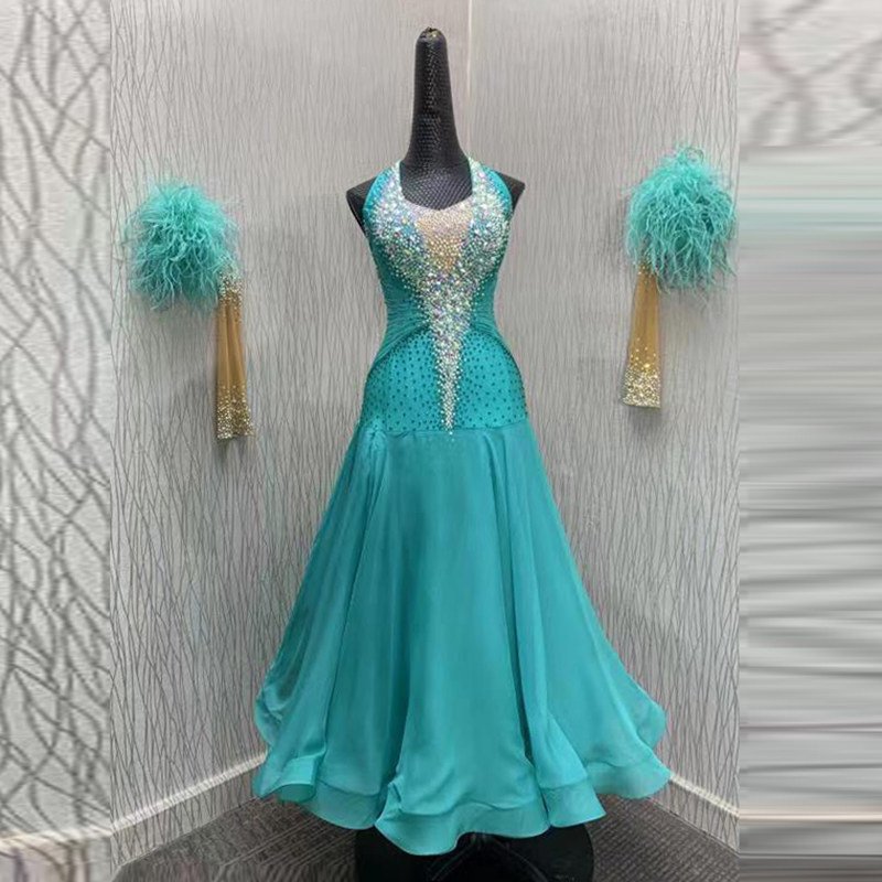 Modern Dance Dress imitates the national standard dance show outfit ostrich hair swing swing dress Waltz Performance Costume