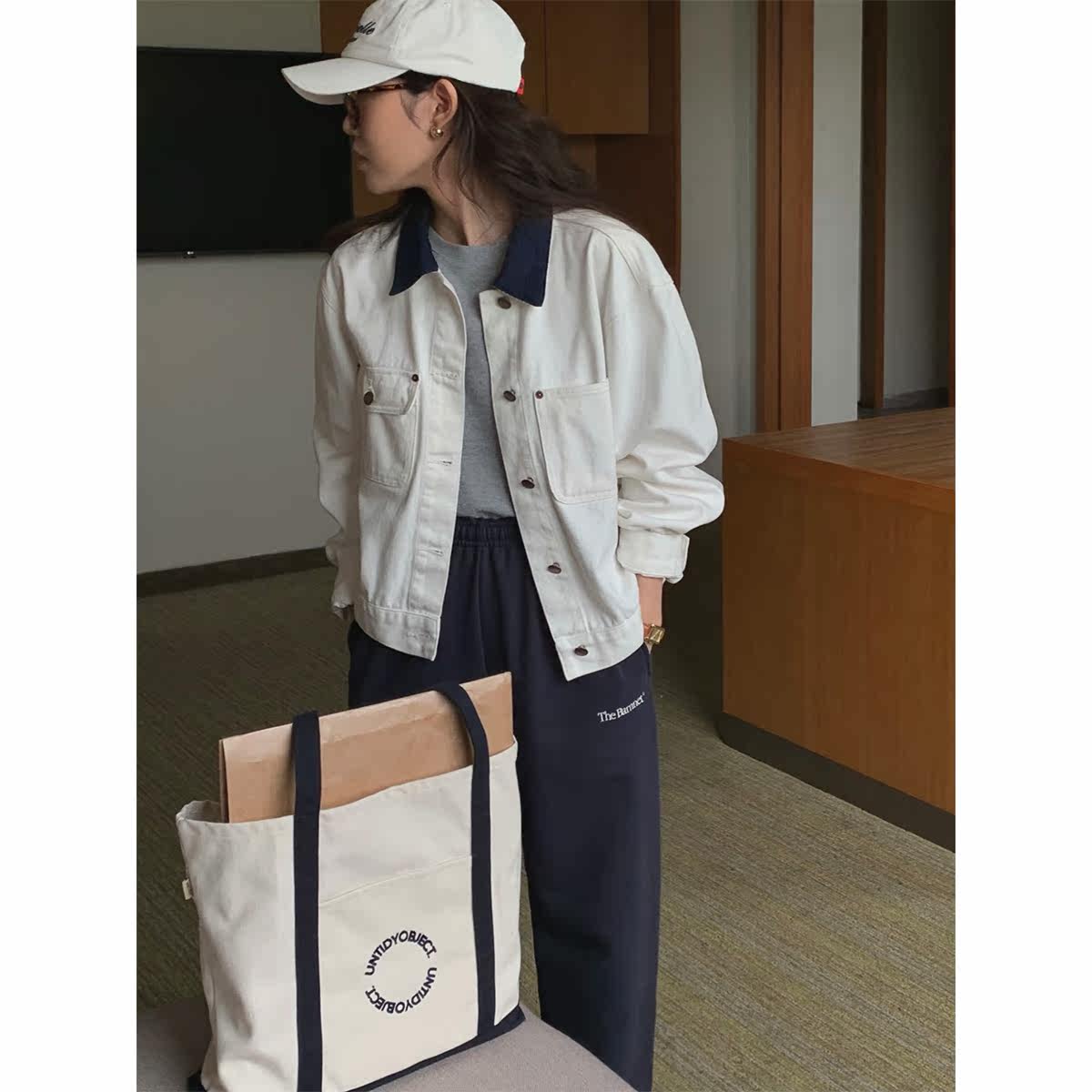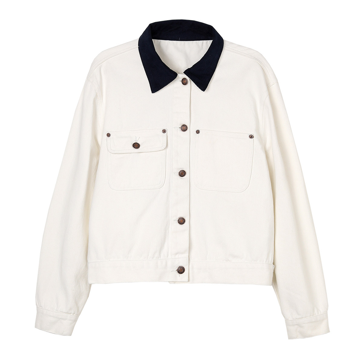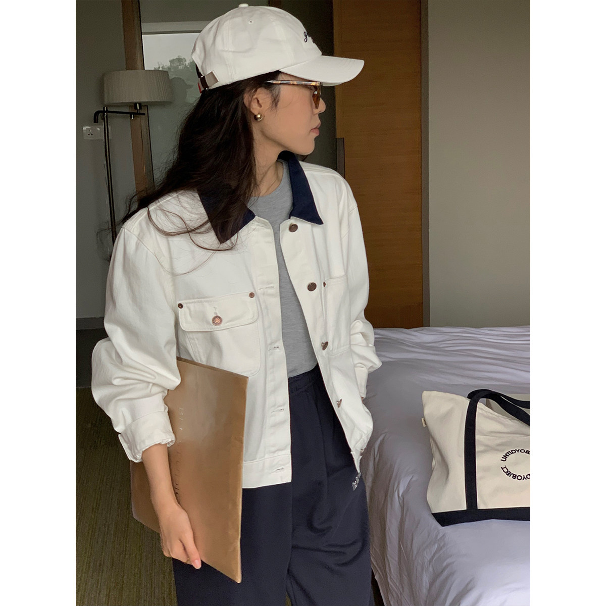5siss Retro Loose White Denim Jacket Women 2022 Spring and Autumn New Design Contrast Color Jacket Top Trend
