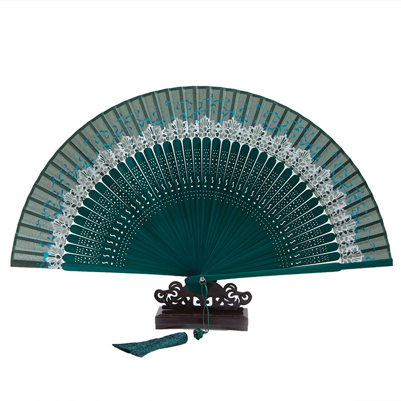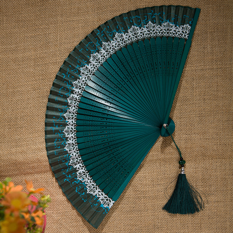 Antique Hanfu portable fan female model cheongsam catwalk fan Chinese style classical dance folding fan dark green