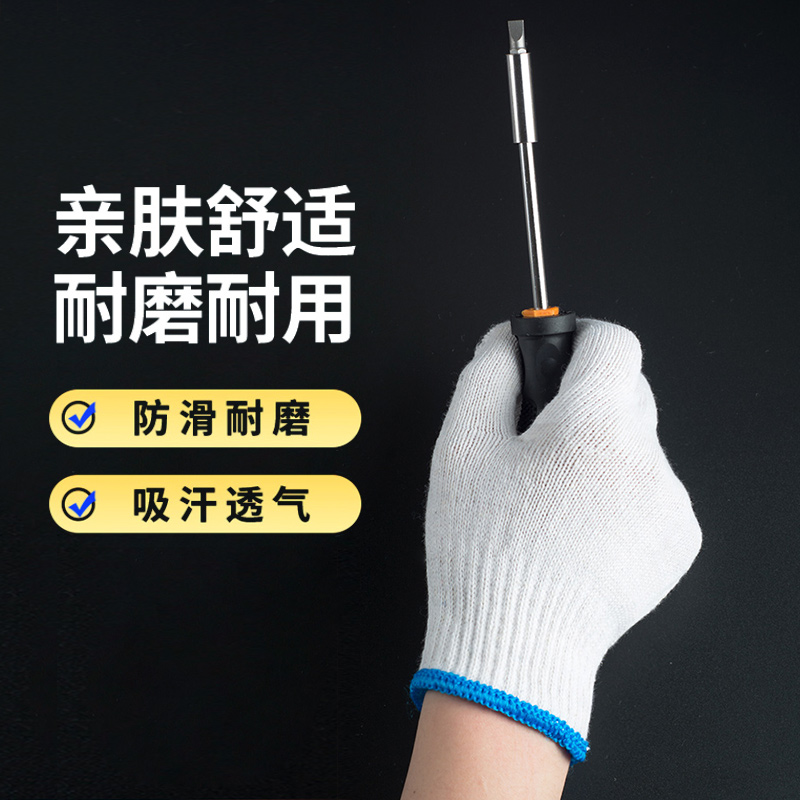 Labor insurance gloves construction site men work wear-resistant work non-slip cotton thickened breathable white yarn cotton thread nylon wholesale