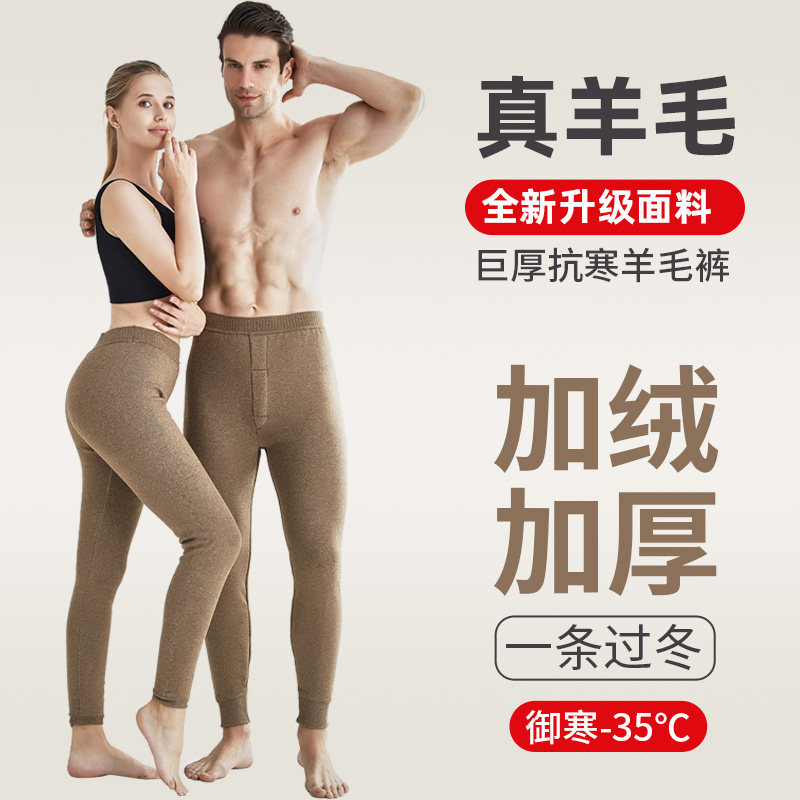 Men's wool trousers thickened plus velvet warm trousers women's bottoming cashmere trousers high waist middle-aged and elderly lamb velvet cotton trousers winter
