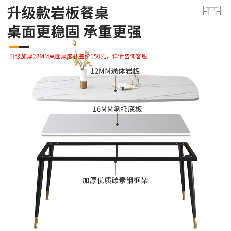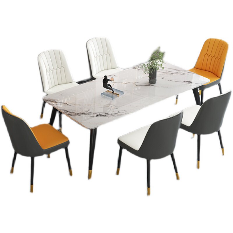 Italian bright rock slab dining table modern minimalist household small apartment rectangular light luxury dining table and chair combination dining table