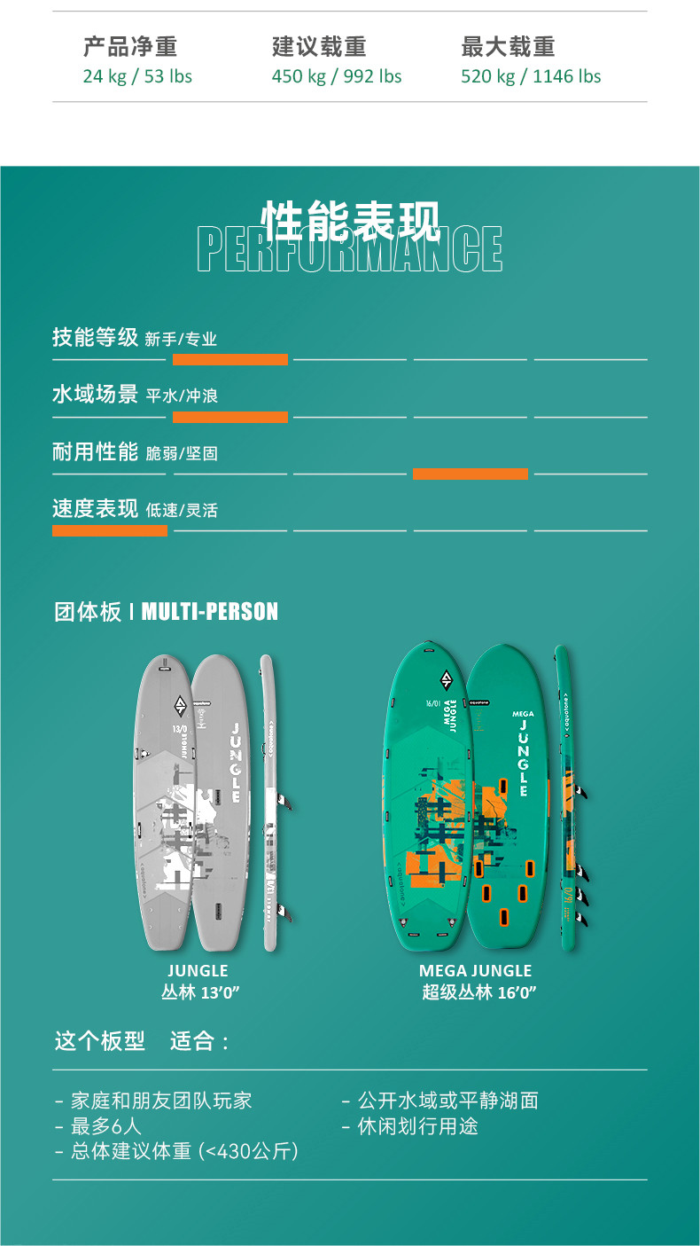 AZTRON Super Jungle Multiplayer Paddle Board Family Family Water Ski Team Fun Racing Surfboard Windsurfing