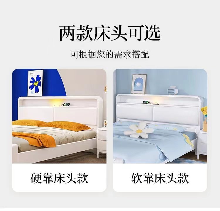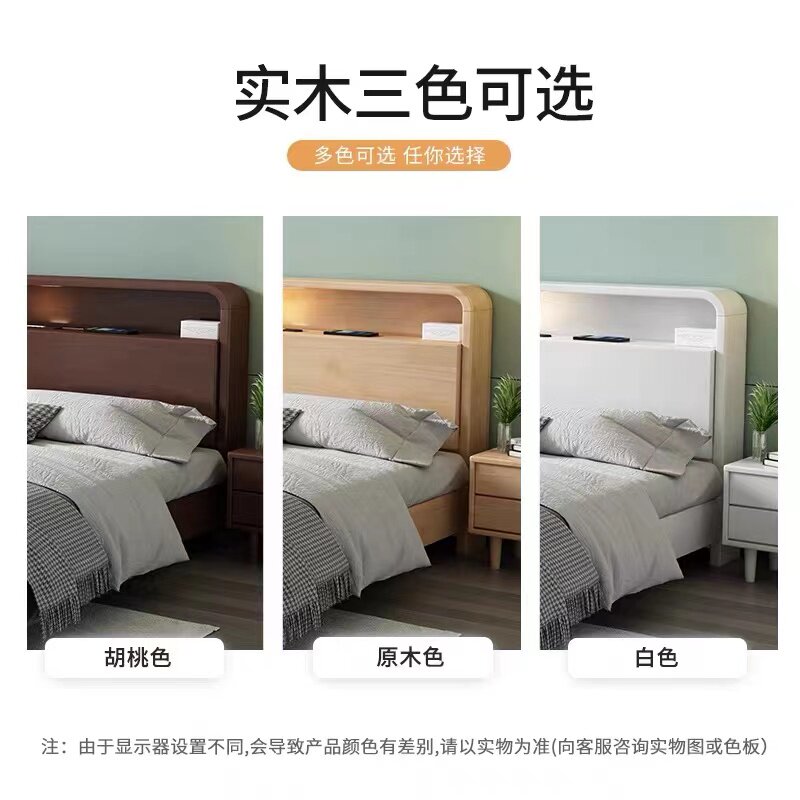 Bed (remarks for soft and hard support) with night light, rechargeable solid wood bed, 1 bedside table, solid wood bed, 2 bedside tables, 10cm environmental protection brown mattress bed, 10cm environmental protection brown mattress, 1 cabinet bed, 10cm