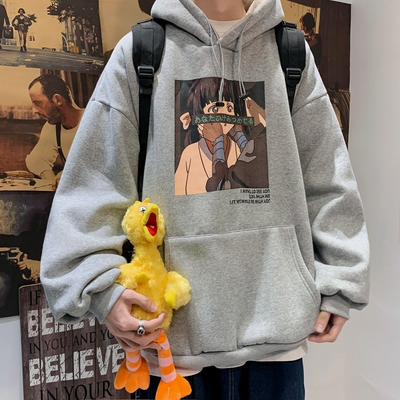 Autumn and winter new velvet thickened hooded sweater men's ins loose couple coat large size trendy top Li Ning Qi