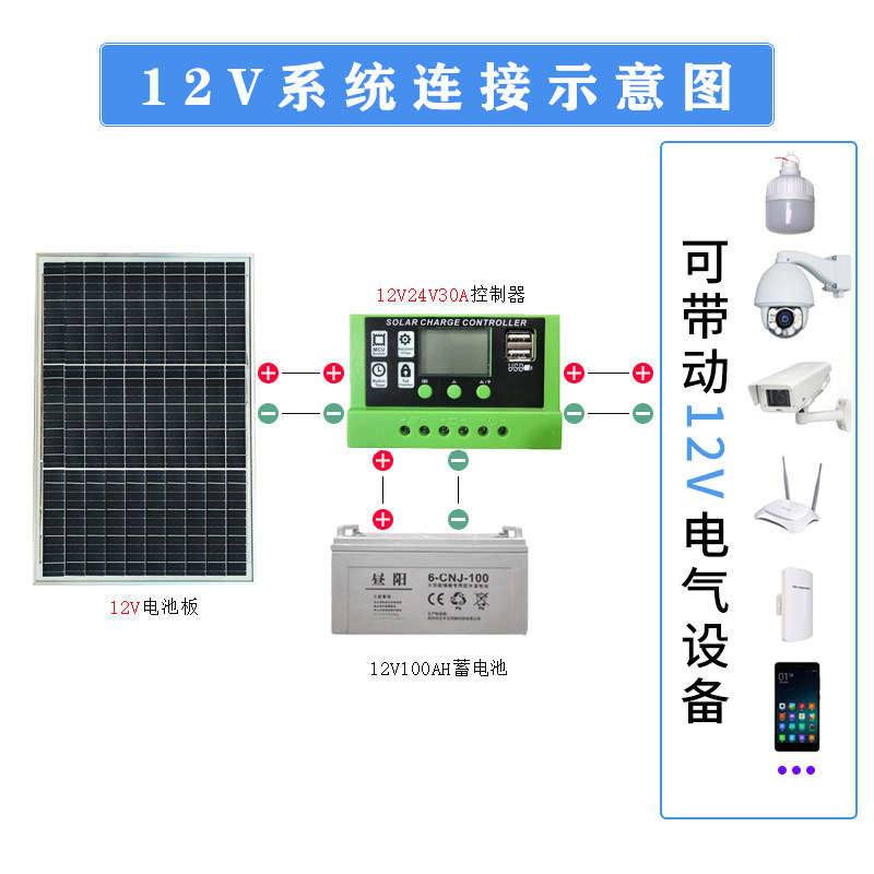 (latest 182) single crystal 100W power generation plate 30A controller 18V 18V charge 12V battery