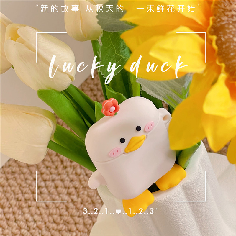 Warm Xia Ins Solid Flowers Fun Little Ducks apply Airpods2 protective sleeve Apple Wireless Bluetooth headphone sleeve Airpods3 Generation Pro Silicone soft new cartoon Japan-ROK cute little