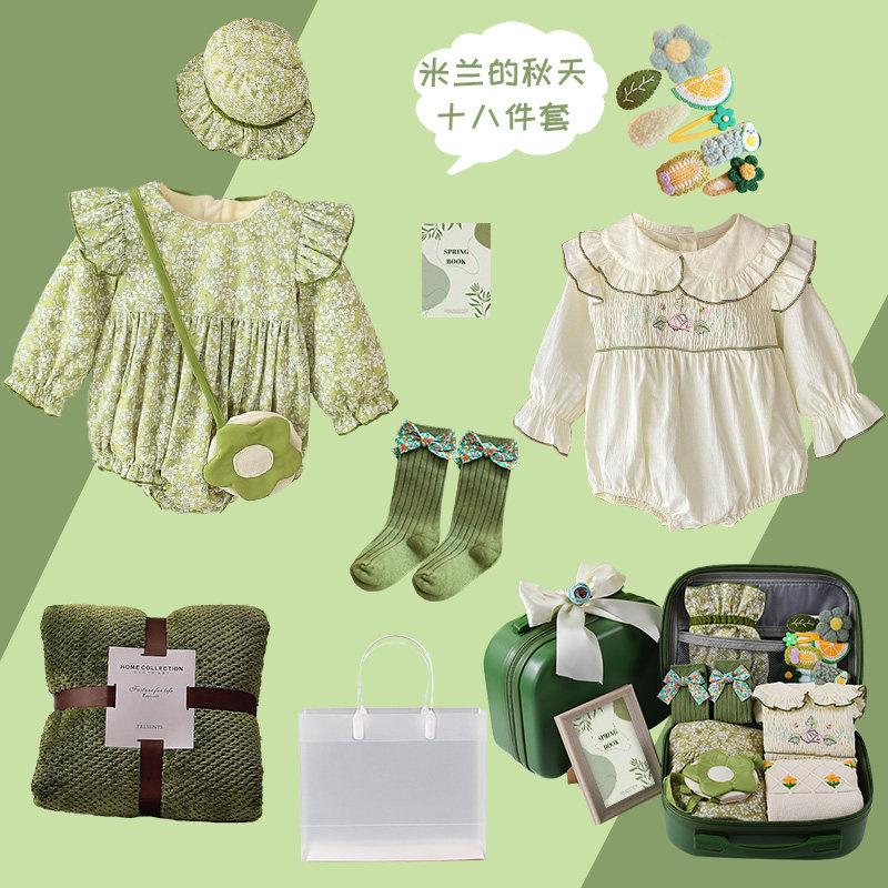 Baby Girl Full Moon Gift Box Spring Autumn Long Sleeves Baby Born 100 Days Baby Gift Newborn Pure Cotton One-piece Suit Suit
