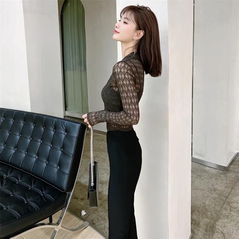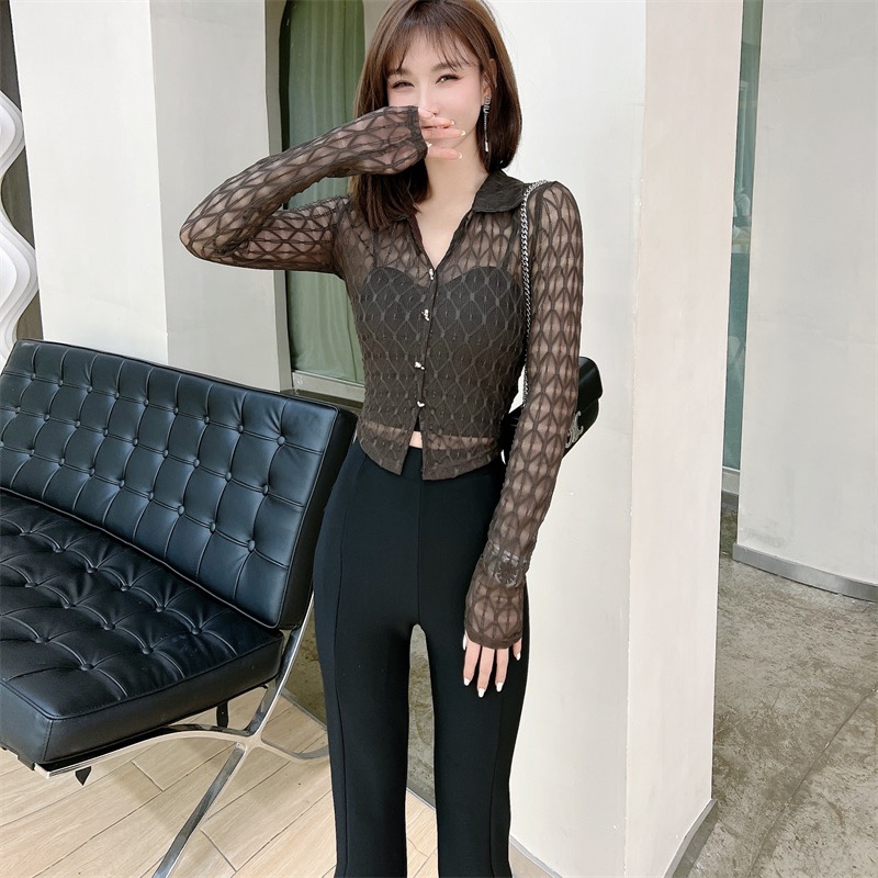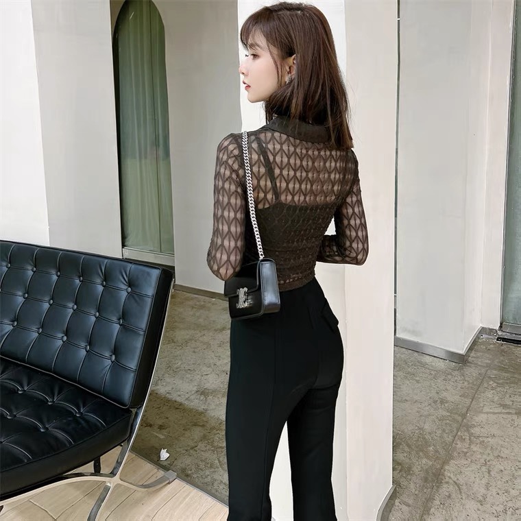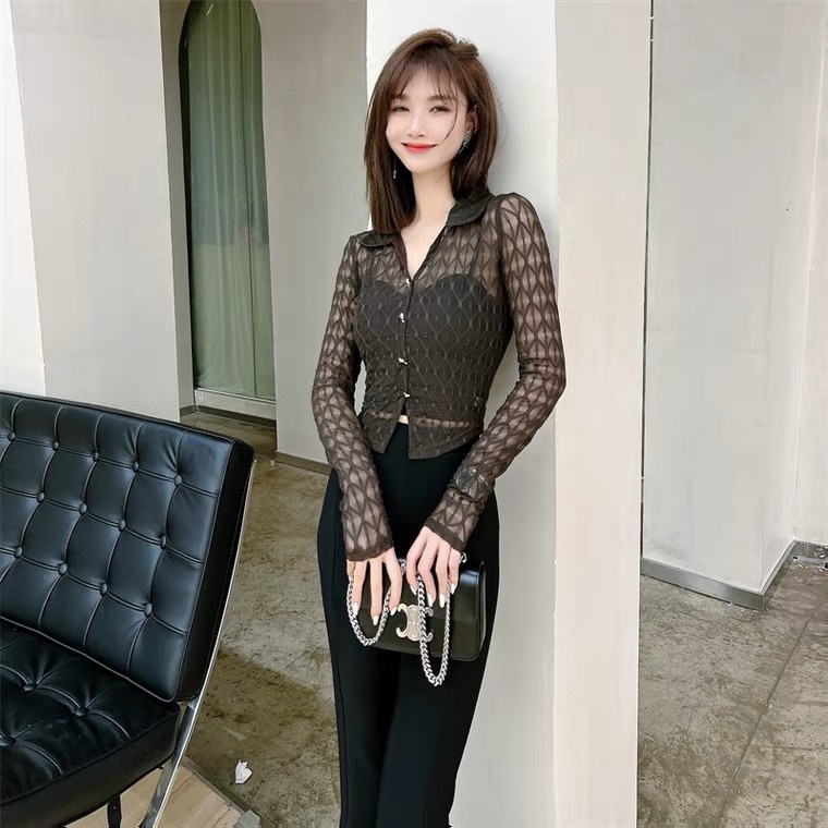 Kaka Women's Official Han Edition V-leaning Grace Shirt Early Autumn Hollow T-shirt