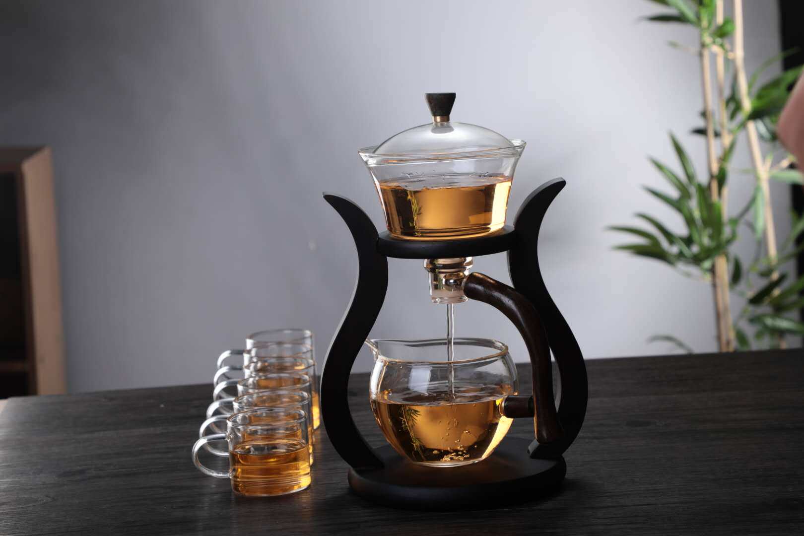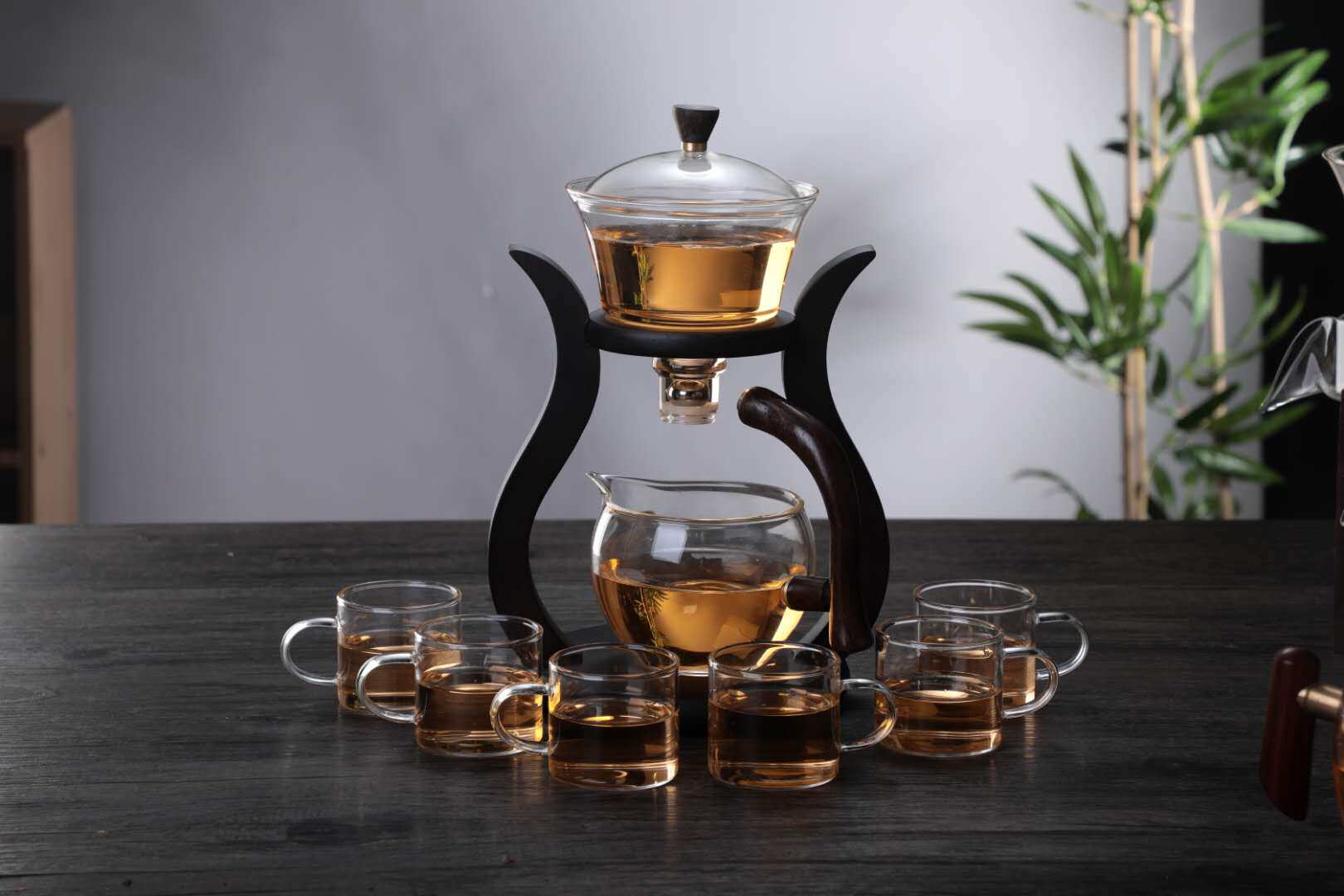 Heat-resistant net red vibrato lazy magnetic wooden stand device tea making silicon high set glass boron semi-automatic