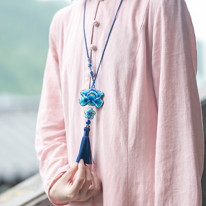 Unitary State Miao Embroidered National Wind Featured Neck Accessories of Ping An Fugui Peony Flowers Necklace-Taobao