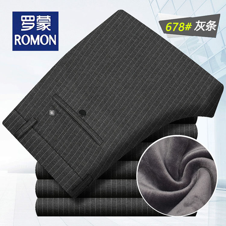 Romon Winter Men Casual Pants Loose Straight Barrel Long Pants Plus Suede Thickening Business West Pants Dad Pants Outside-Taobao