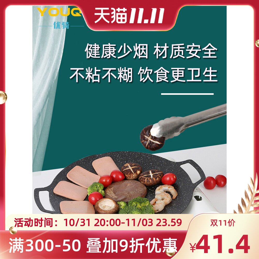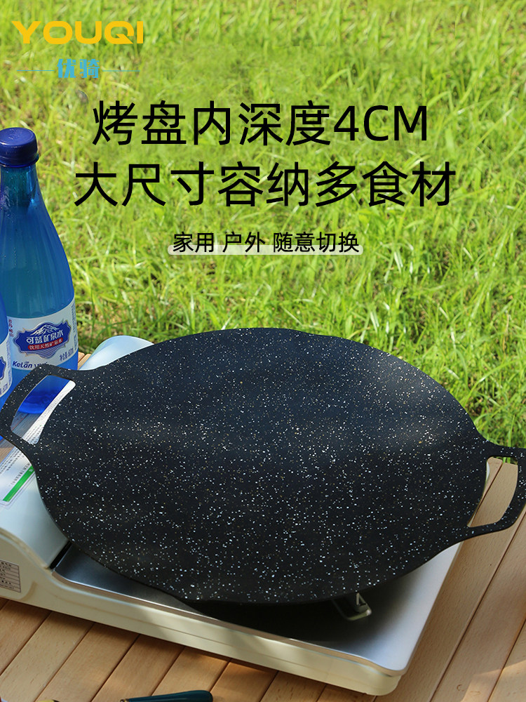 Youqi Korean BBQ Plate Outdoor Cassette Grill BBQ Plate Camping Pan Portable Maifan Stone Cast Iron BBQ Meat Pot
