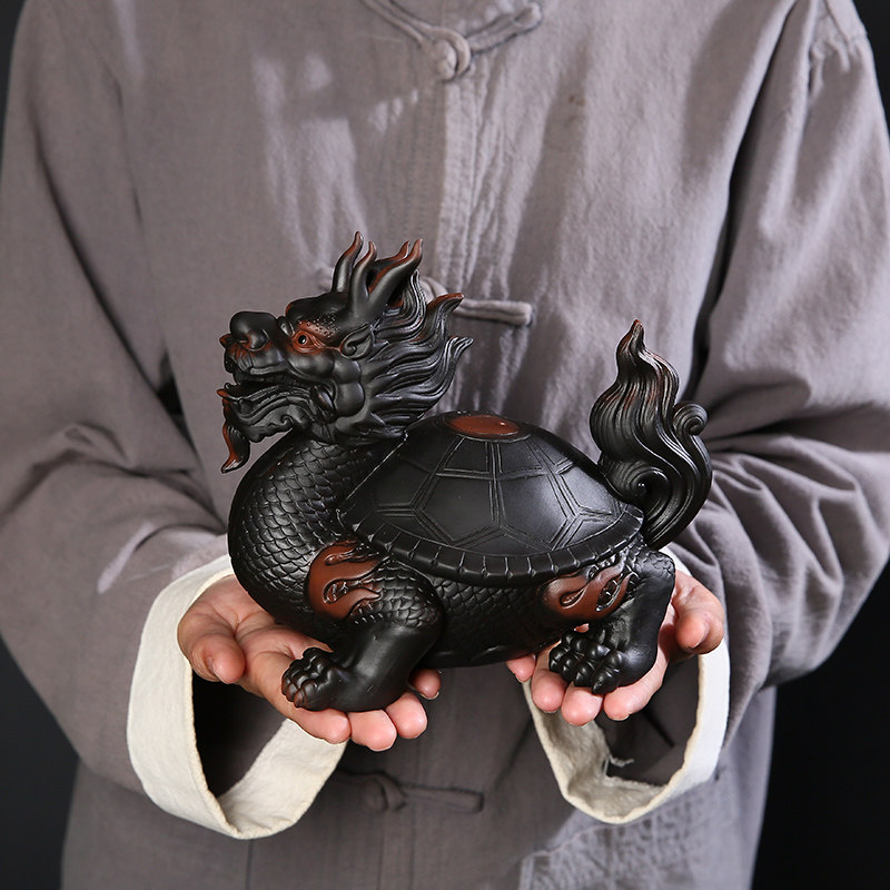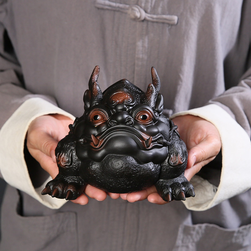 High-end large number purple pottery golden toad tea darling Fortune Dragon Tortoise Pendulum Pieces Boutique can be raised by hand Three-foot dragon toad teas-Taobao