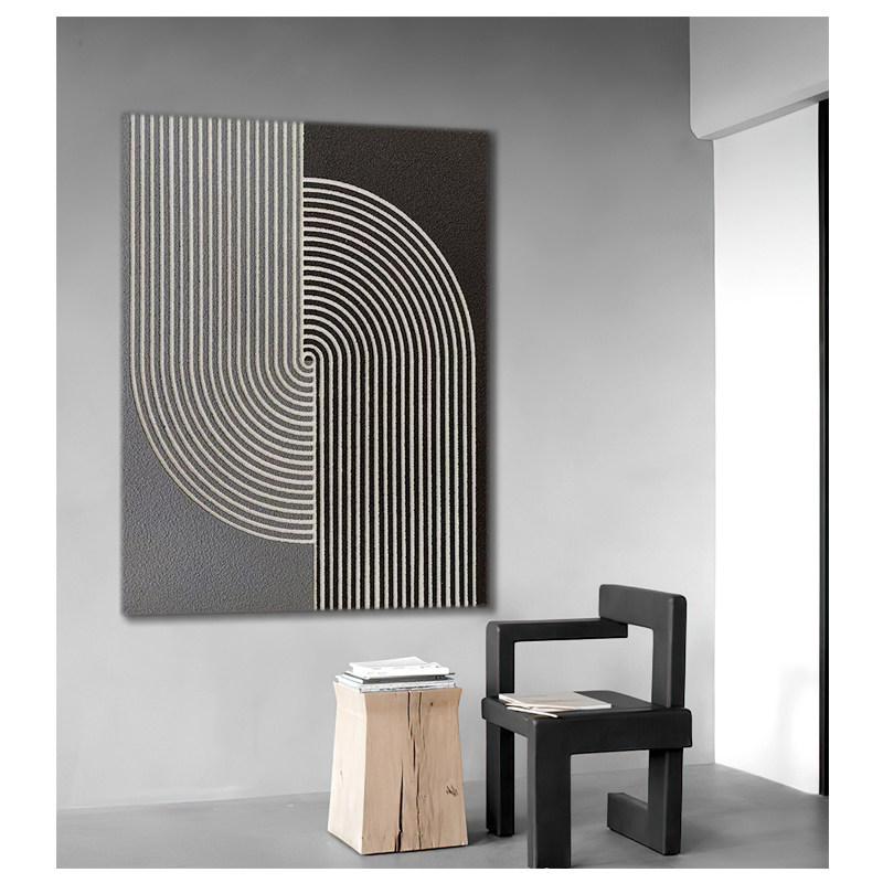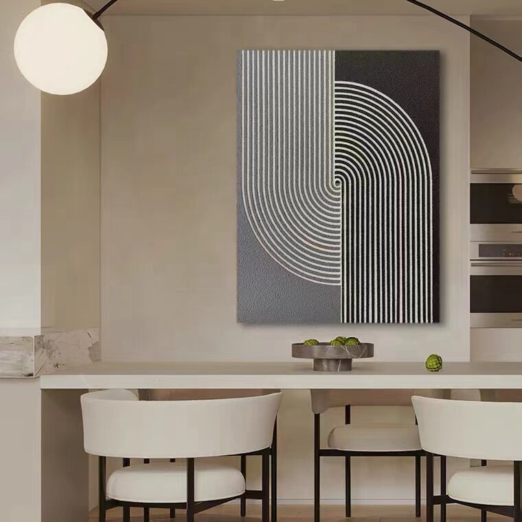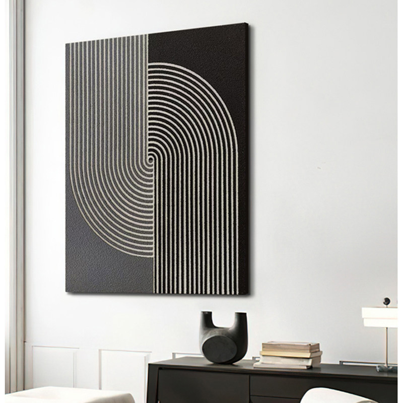 Pure hand-painted oil painting abstract minimalist black and white thick texture line decorative painting living room entrance wabi sabi style homestay hanging painting - Taobao