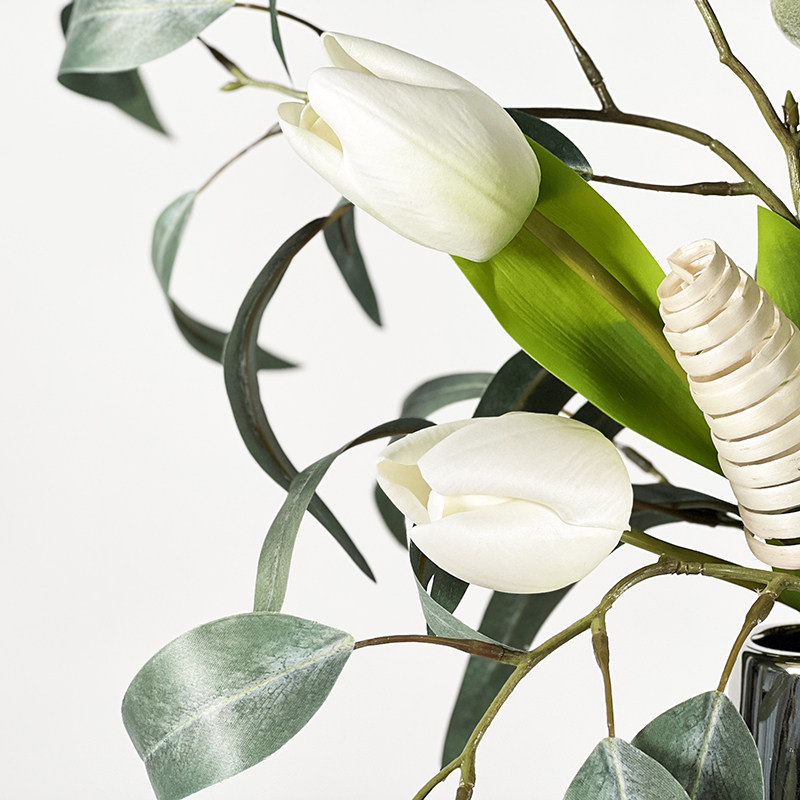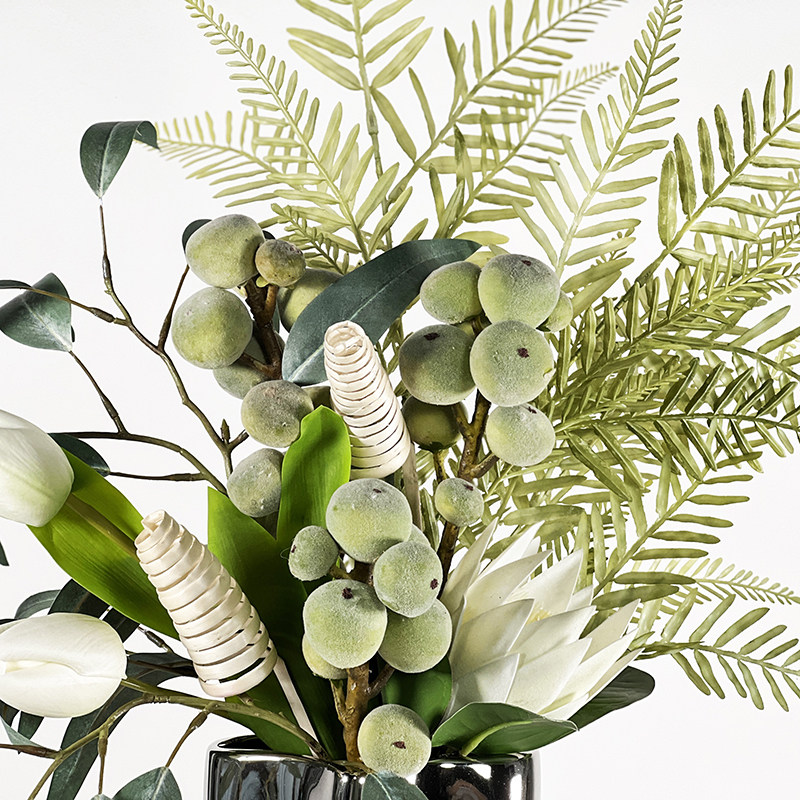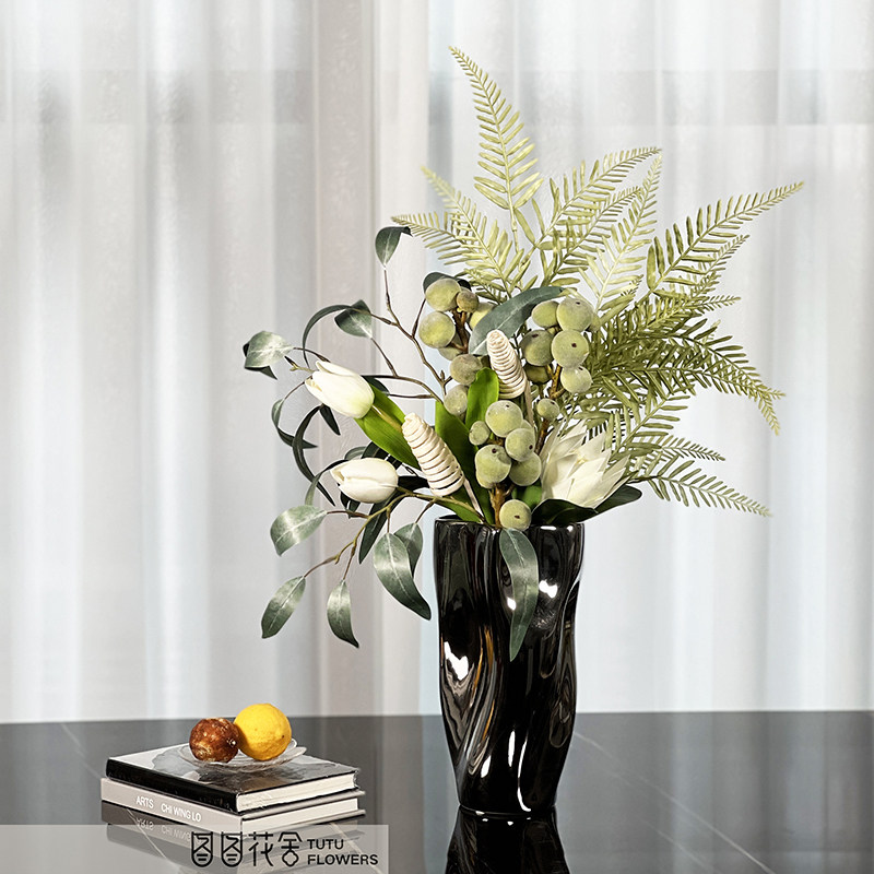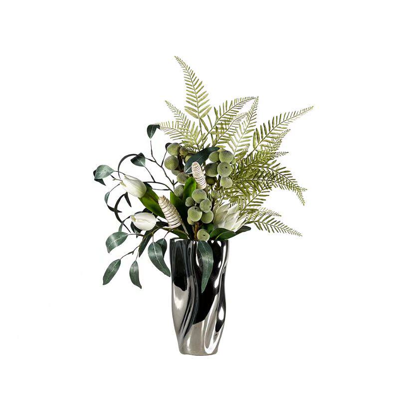 Green simulation flower creative home soft decoration Nordic style geometric silver light luxury vase hotel front desk flower arrangement